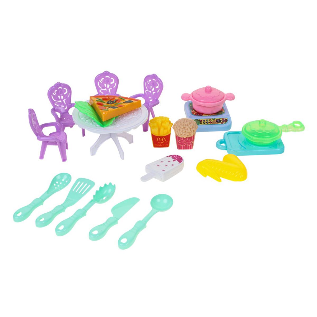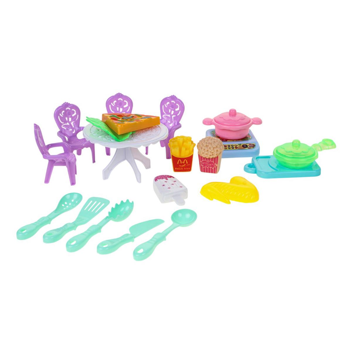 Этот комплект специально создан для девочек от 3 лет, которые обожают ролевые игры. Все предметы изготовлены из качественного пластика безопасных цветов. Набор помогает развивать мелкую моторику, воображение и коммуникативные навыки через игру в «дочки-матери» или «кафе». Компактные размеры предметов удобны для детских рук.
