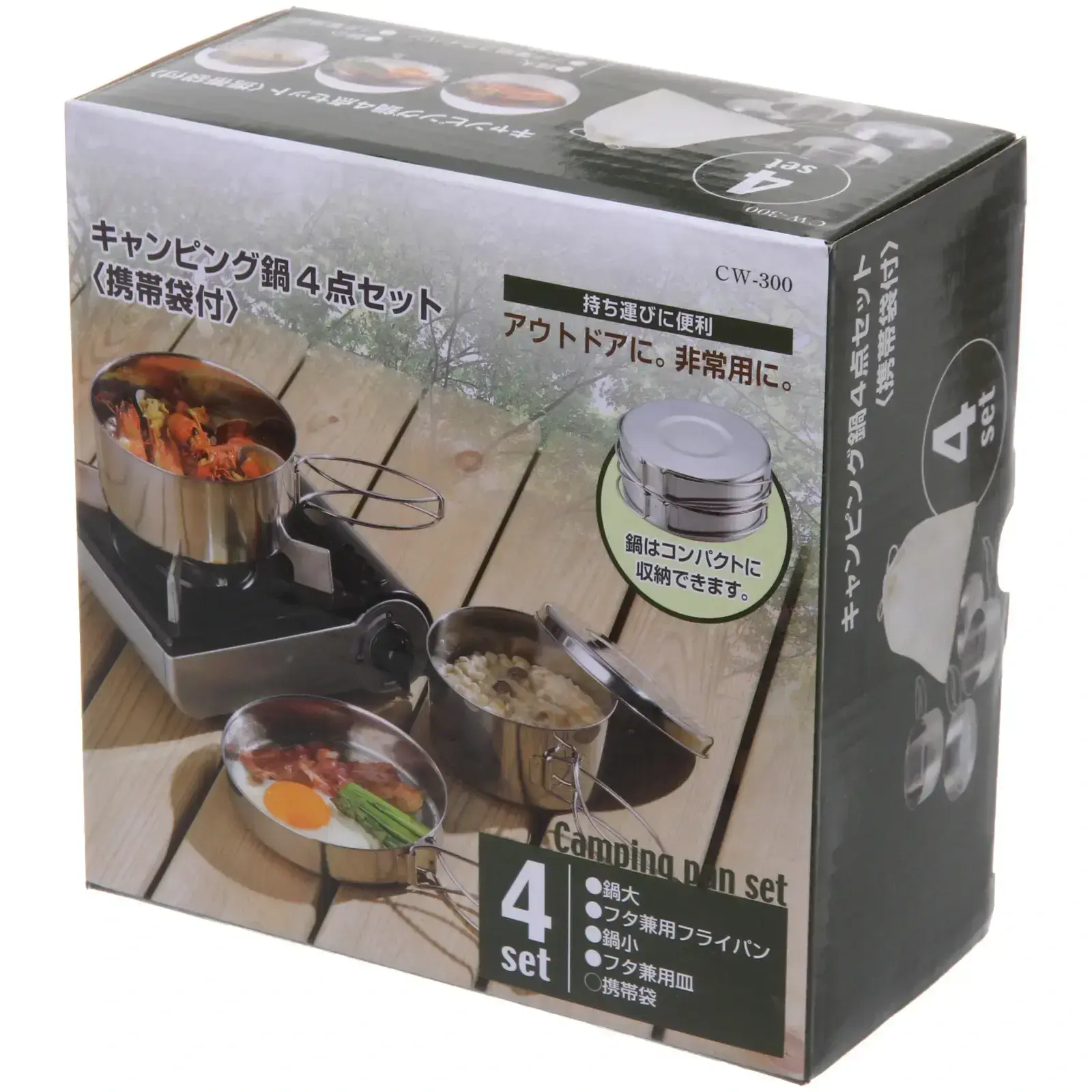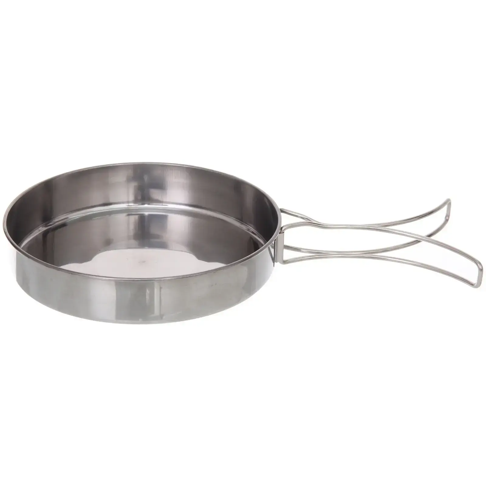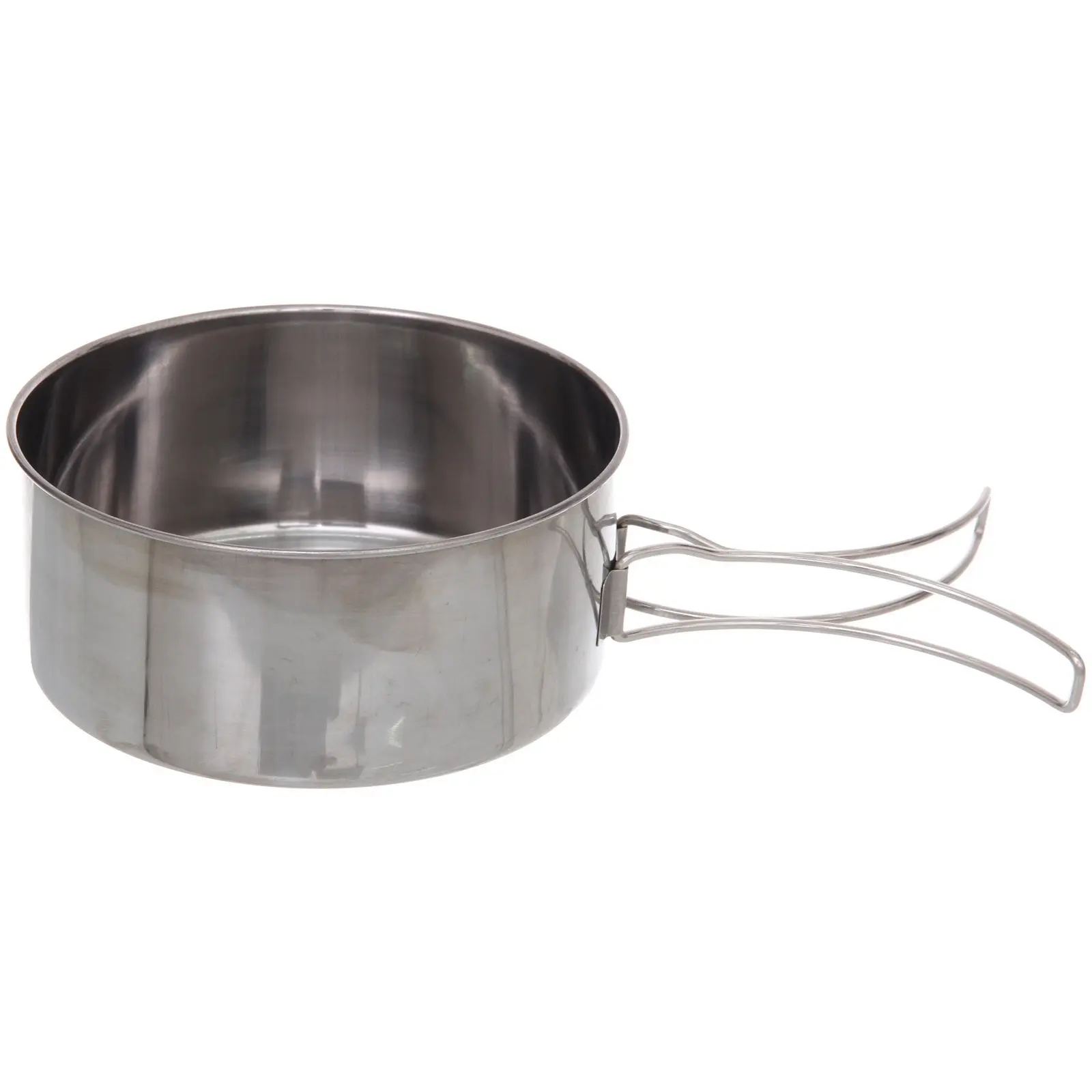 Этот набор включает два котелка объемом 970 мл и 700 мл, сковороду диаметром 15 см и тарелку диаметром 13 см. Все элементы выполнены из нержавеющей стали, что гарантирует долговечность и легкость в уходе. Набор идеально подходит для кемпинга, пикников и путешествий, а также для использования на даче.
