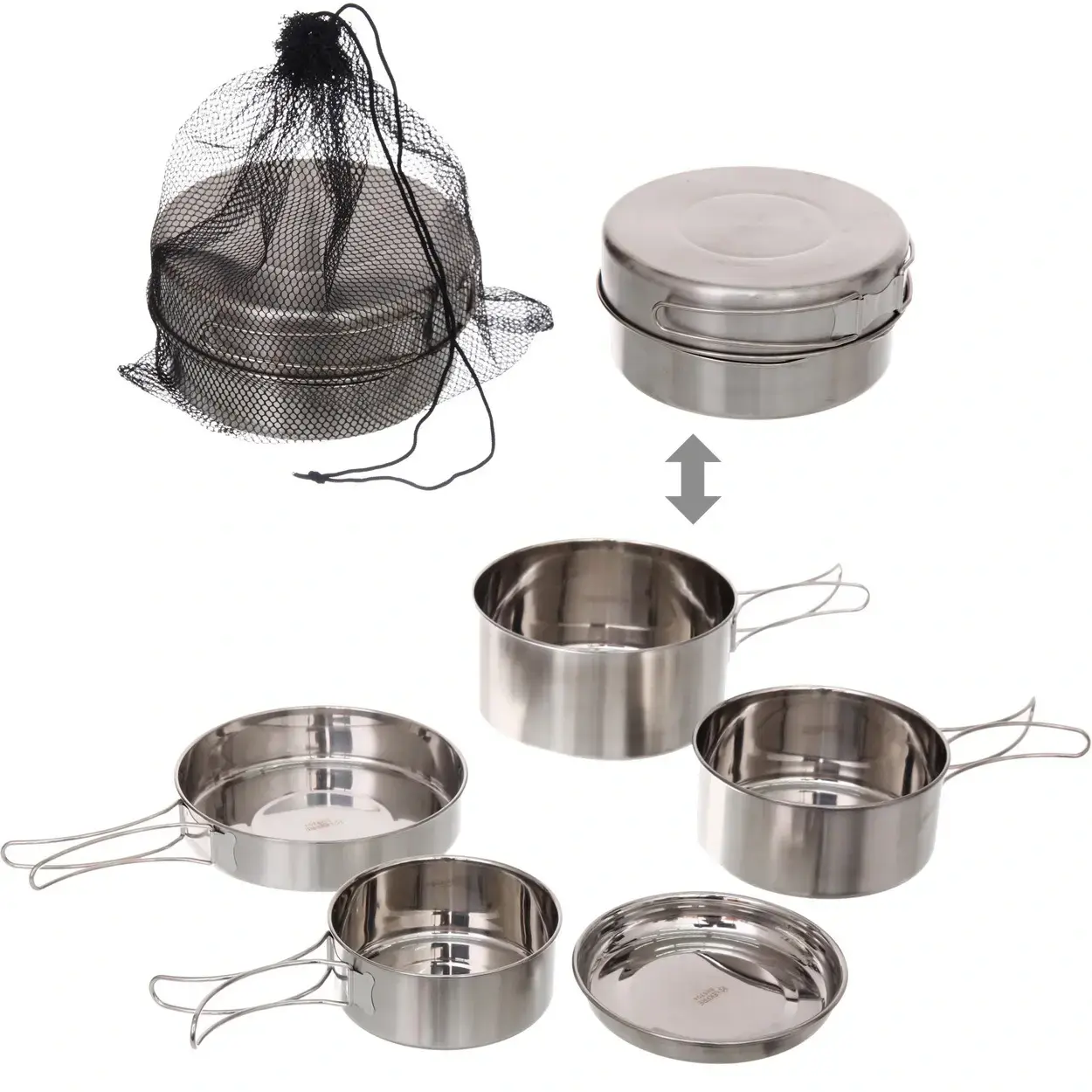 Ищете идеальный набор посуды для походов и пикников? Наш набор посуды из нержавеющей стали включает 5 предметов, которые обеспечат вам комфорт и удобство в любых условиях. С ним вы сможете готовить и сервировать еду на природе, не беспокоясь о качестве и долговечности.
