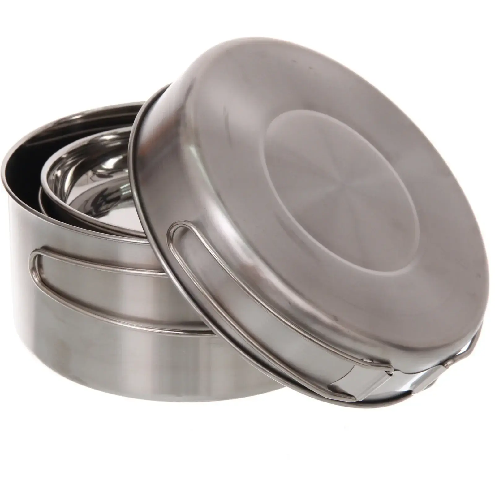 Почему стоит выбрать именно этот набор? Во-первых, он изготовлен из высококачественной нержавеющей стали, что гарантирует его долговечность и устойчивость к коррозии. Во-вторых, все предметы имеют гладкую поверхность, что облегчает их очистку и уход. Кроме того, они легко укладываются друг в друга, что экономит место при транспортировке.