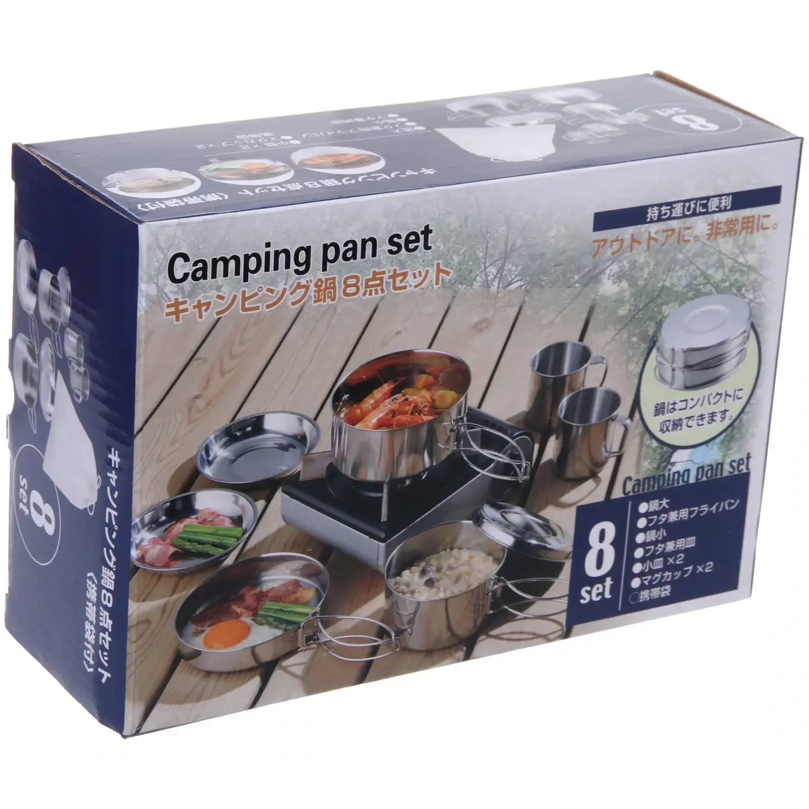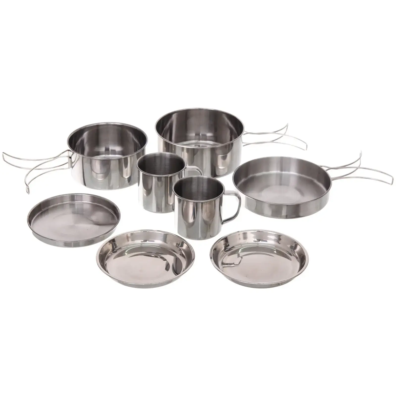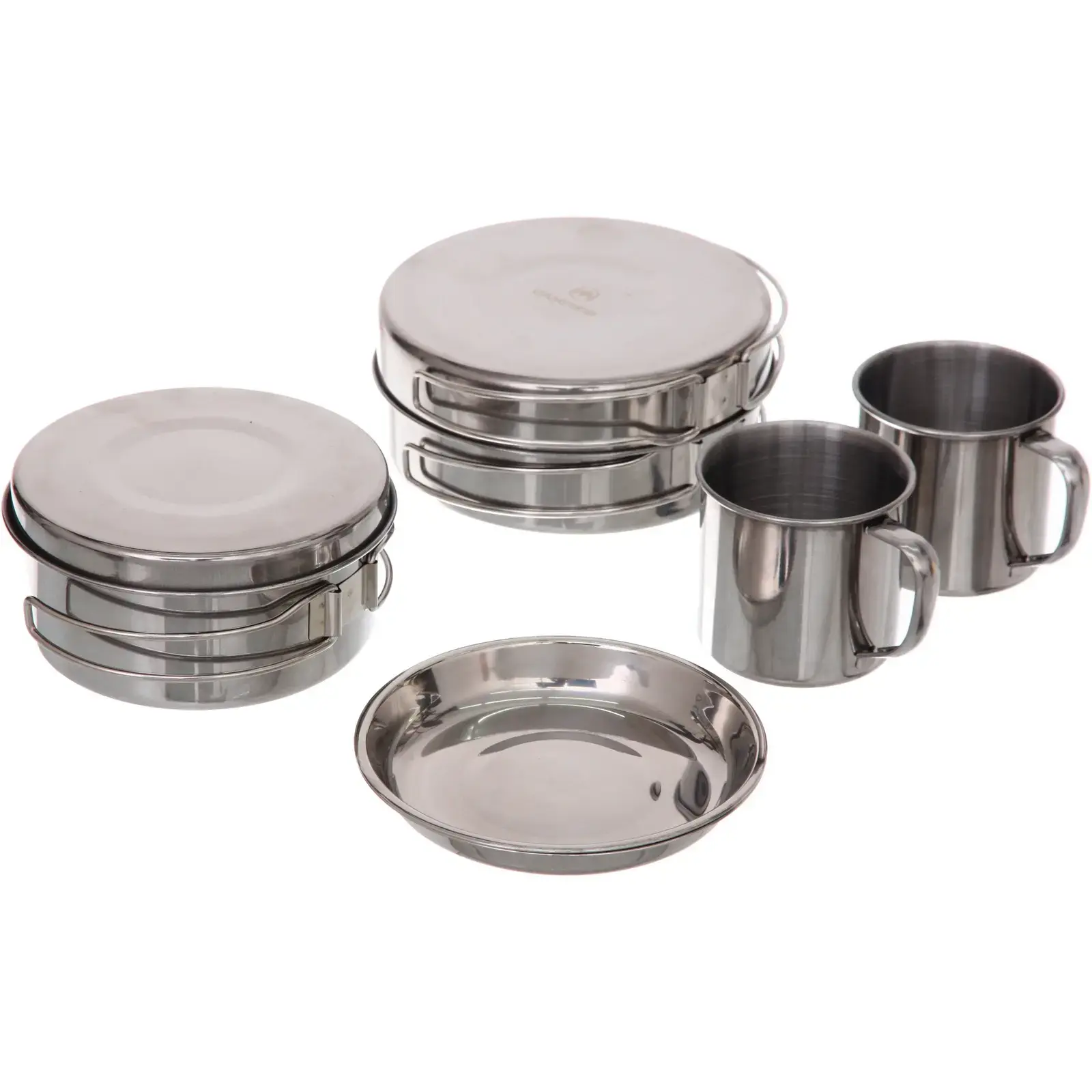 В комплект входят 8 предметов: две кастрюли, сковорода, три тарелки и две кружки. Все элементы имеют гладкую поверхность, что облегчает уход и чистку. Кастрюли и сковорода оснащены удобными ручками, что позволяет легко переносить их даже в горячем состоянии. Набор подходит для использования на открытом воздухе, что делает его незаменимым для любителей активного отдыха.