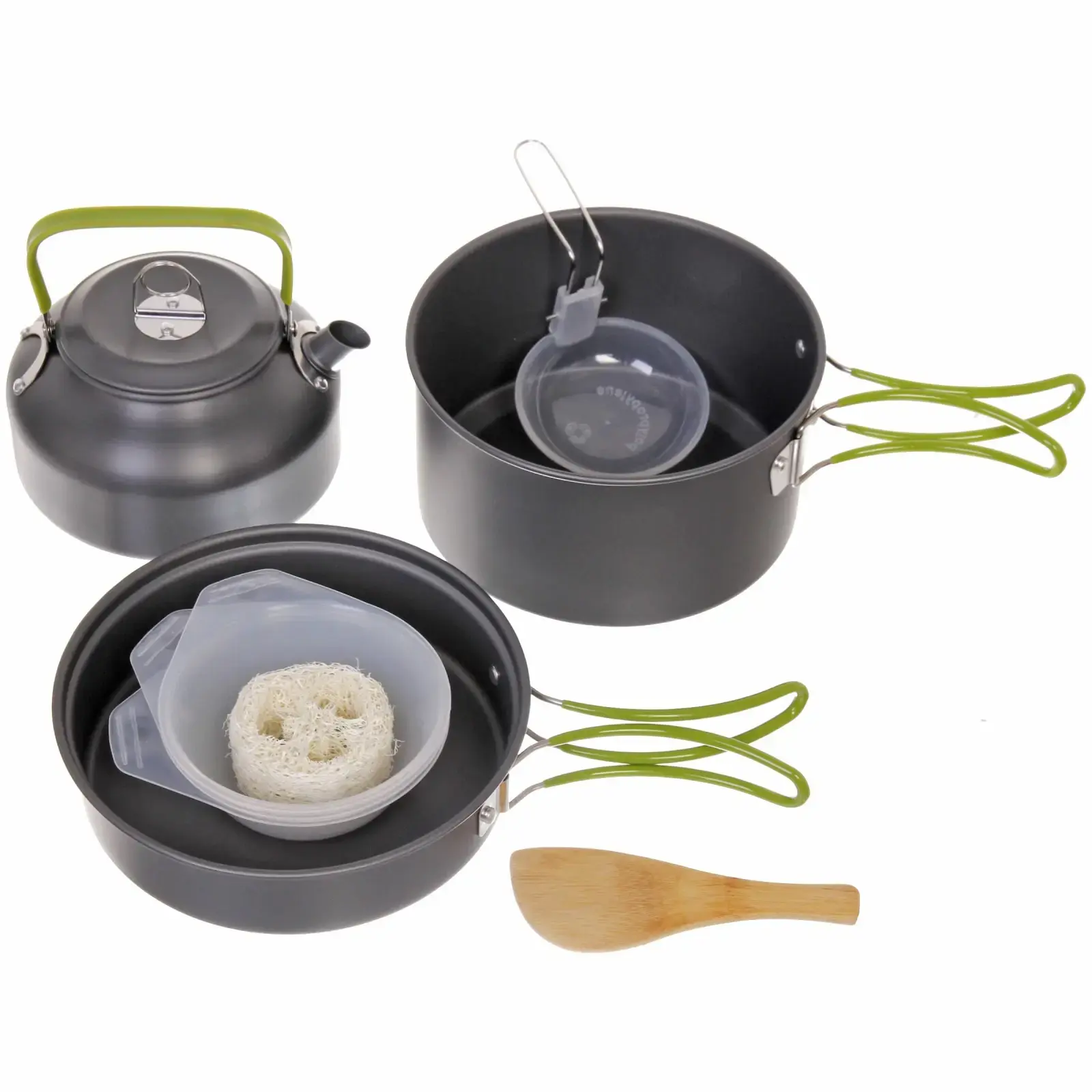 Надежный походный котелок с универсальной крышкой-сковородой и вместительным чайником на 0.8 литра станет вашим незаменимым спутником в путешествиях.