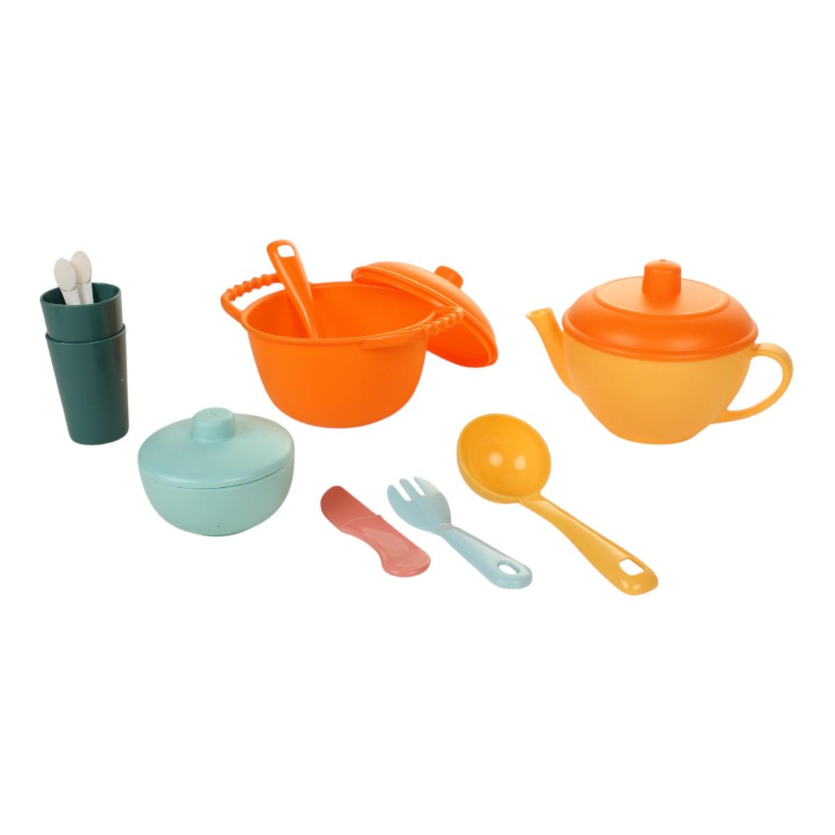 Яркий комплект из 11 предметов поможет развить фантазию и научиться основам сервировки в увлекательной игровой форме. Безопасные пластиковые элементы с закругленными краями идеально подходят для детских рук.