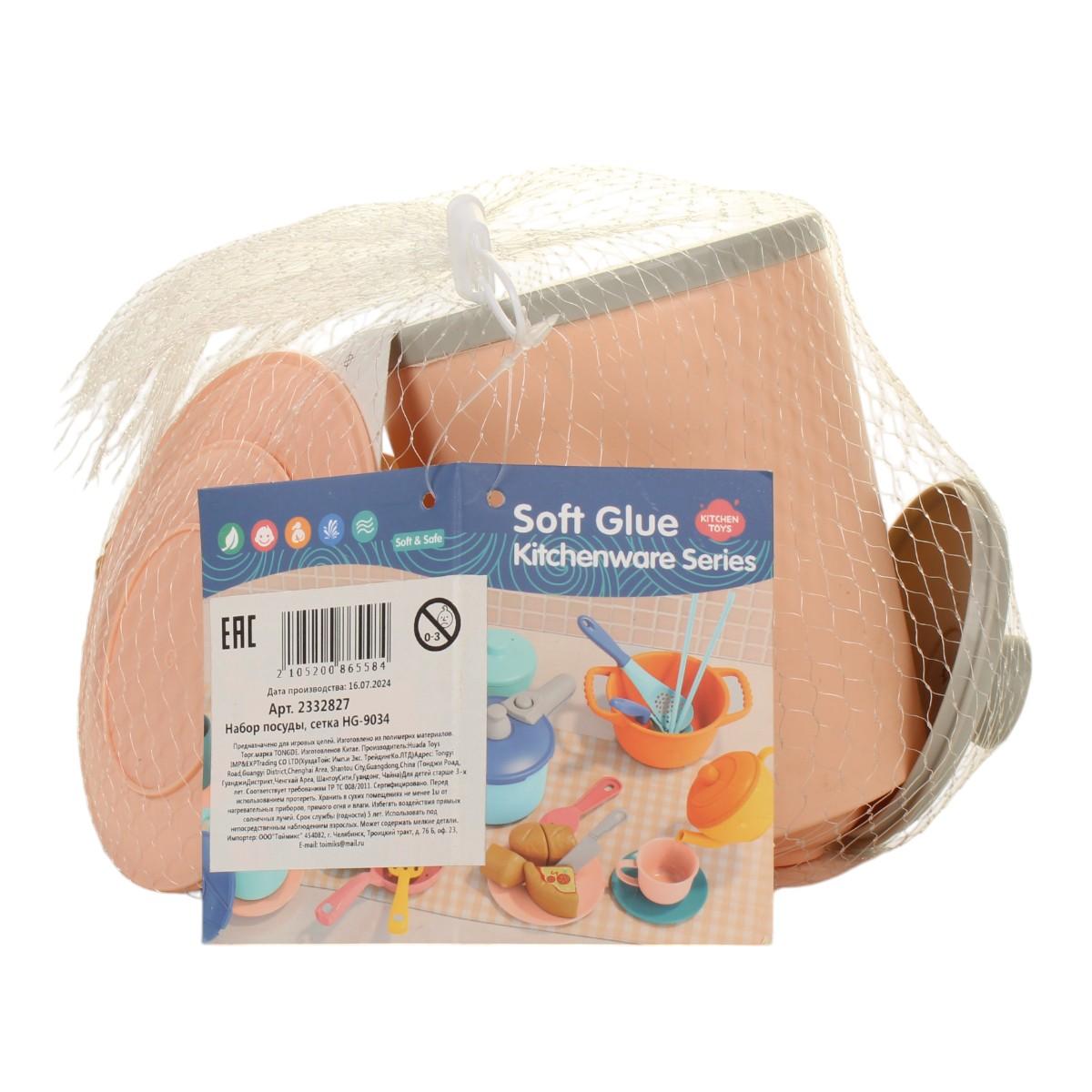 Позвольте вашему ребенку погрузиться в увлекательный мир кулинарии с набором посуды 'Soft Glue'. Этот комплект из 18 предметов создан специально для развития творческого мышления и навыков ролевых игр.