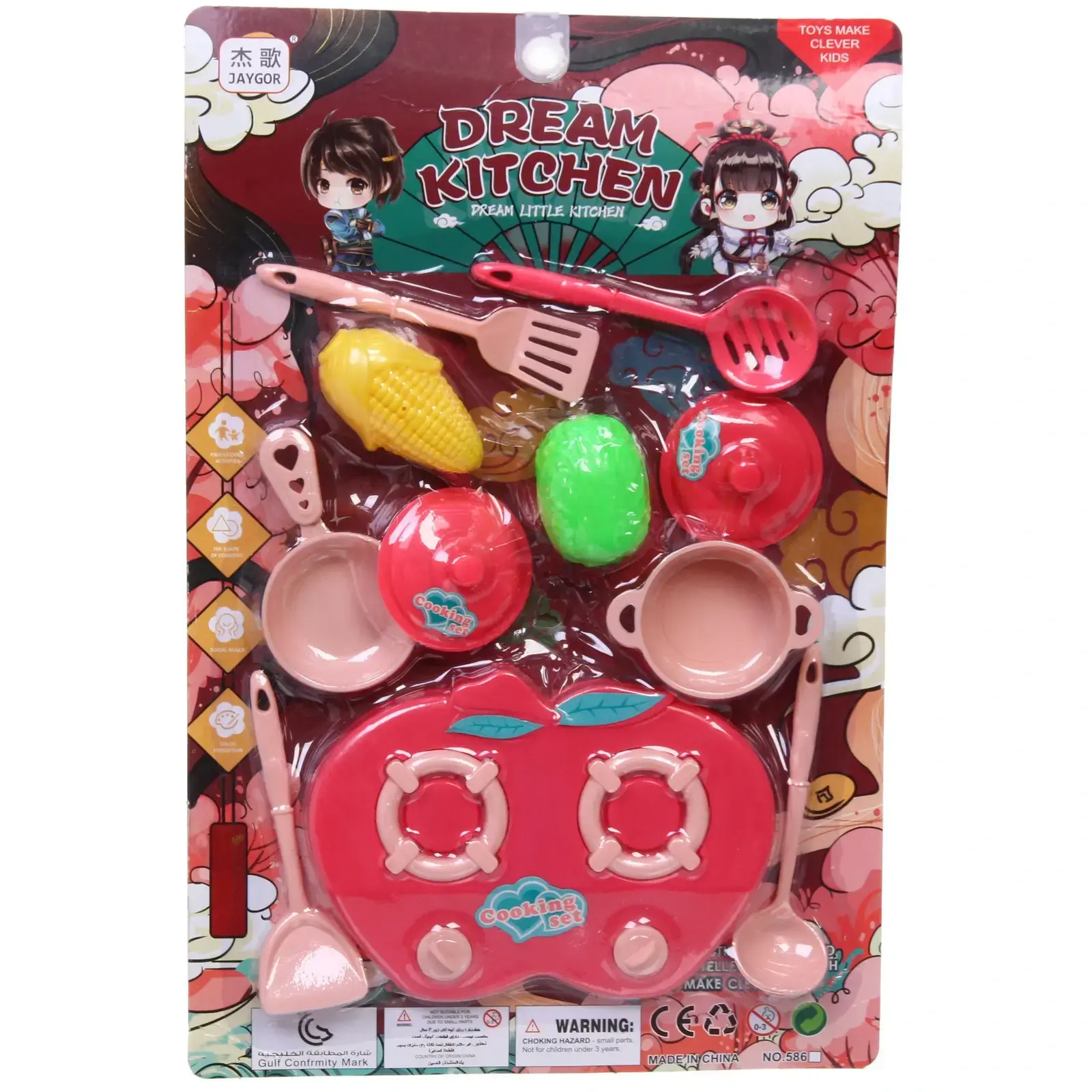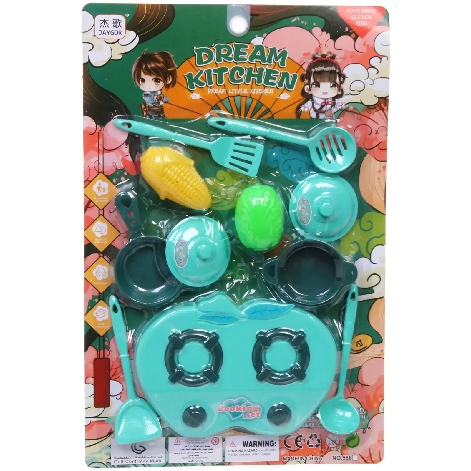 Набор включает в себя кастрюли, сковороду, ложки и игрушечные продукты, такие как фрукты и овощи. Все элементы имеют округлую форму и яркие цвета, что делает игру еще более увлекательной. Набор подходит для детей от 3 лет и станет отличным дополнением к любой игровой кухне.