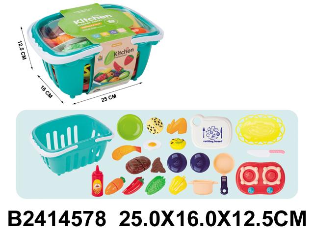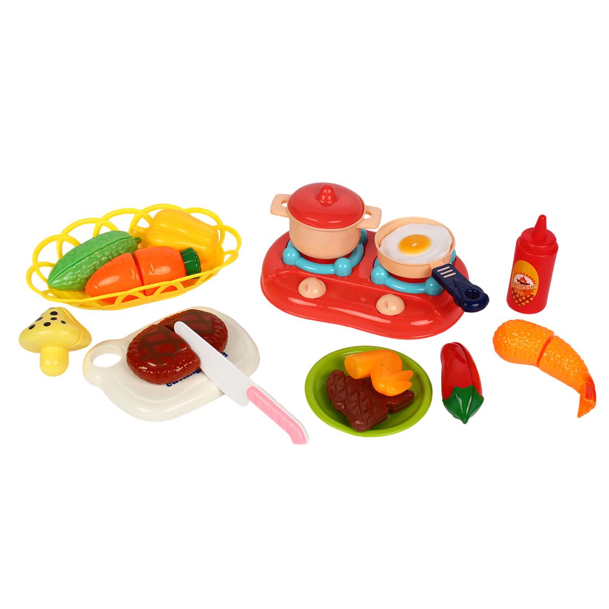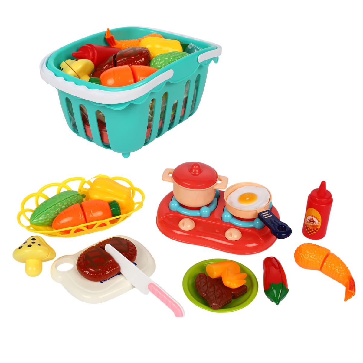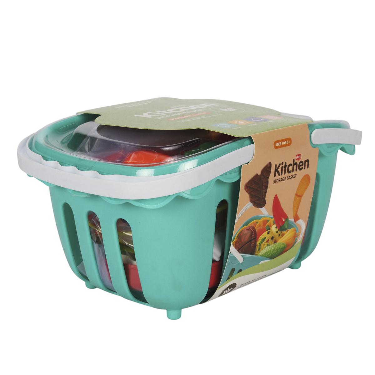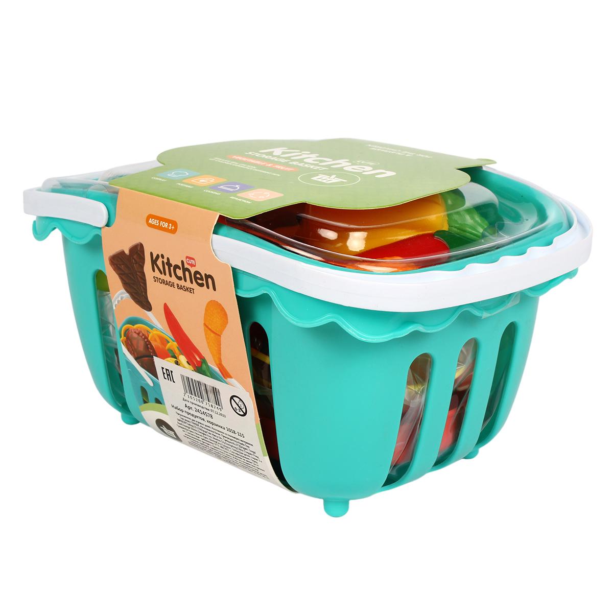 Размер упаковки составляет 25,0 * 16,0 * 12,5 см, что делает набор компактным и удобным для хранения. В него входят: корзина, разделочная доска, плита, ножик, кастрюля, сковорода, поднос, тарелка и 12 аксессуаров. Все элементы набора выполнены из прочного и безопасного пластика, что делает их идеальными для детских игр.