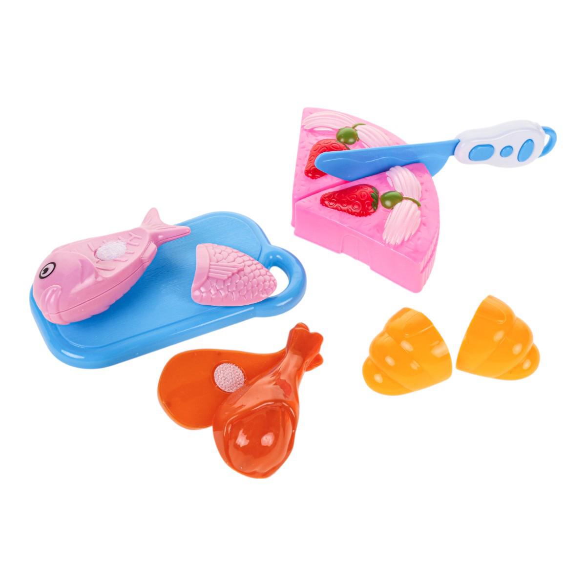 Этот набор идеально подходит для сюжетно-ролевых игр, где ваша девочка сможет готовить свои любимые блюда. В него входят 2 куска торта, рыба, фрукты, овощи, хлеб, разделочная доска и нож. Все элементы выполнены из безопасного пластика, что делает их идеальными для детей.
