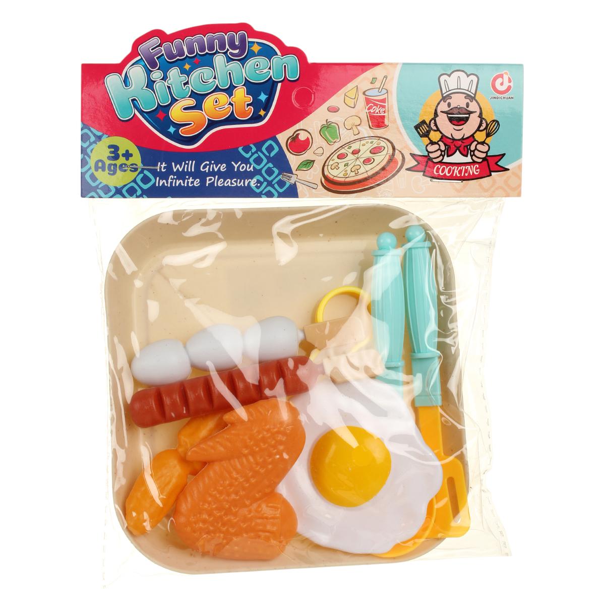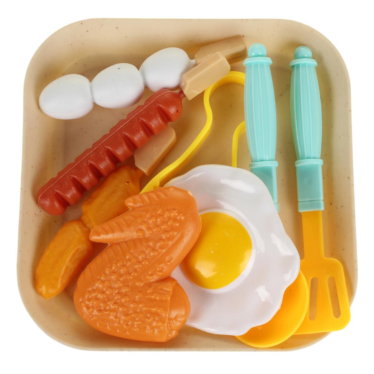 Игровой набор продуктов и посуды — это не просто игрушка, а настоящее приглашение к увлекательным сюжетным играм, которые развивают воображение, мелкую моторику и навыки общения. Яркие элементы из пластика напоминают настоящие продукты: яйцо с желтком, сосиска, куриная ножка, картофельные дольки, ложка, щипцы и лопатка — всё на удобном подносе. Такой комплект легко станет любимым для малышей, которые разыгрывают кулинарные сюжеты, накрывают «стол» для друзей или устраивают пикник с игрушками.