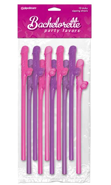 Товар предназначен исключительно для взрослых (18+). Все трубочки имеют одинаковый размер и форму. Материал изготовления - пластик. Цвета в наборе представлены в ассортименте (розовый и фиолетовый). Набор поставляется в оригинальной упаковке с английскими надписями, включая название серии "Bachelorette" и указание "party favors".