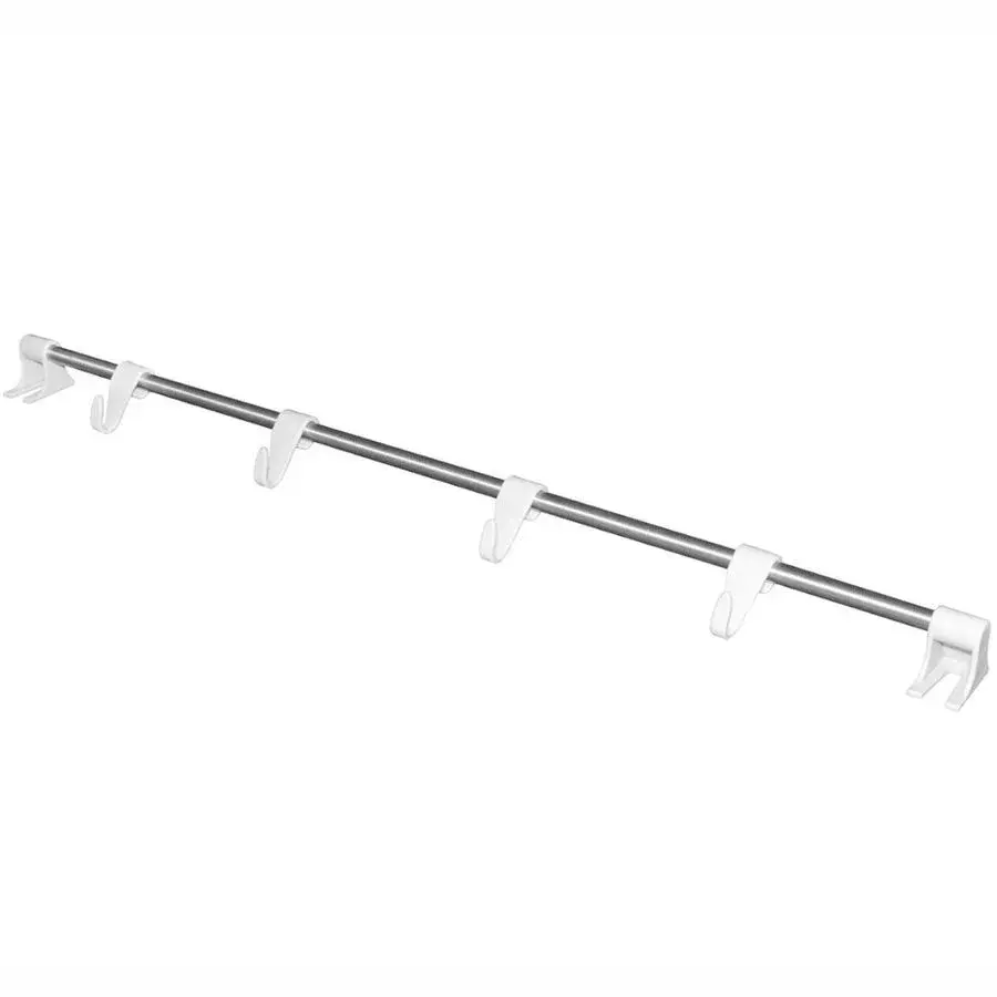 Конструкция состоит из металлической трубки длиной 120 см с прочными пластиковыми крючками. Белоснежное покрытие устойчиво к загрязнениям и легко очищается. Металлические крепления обеспечивают надежную фиксацию на стене.