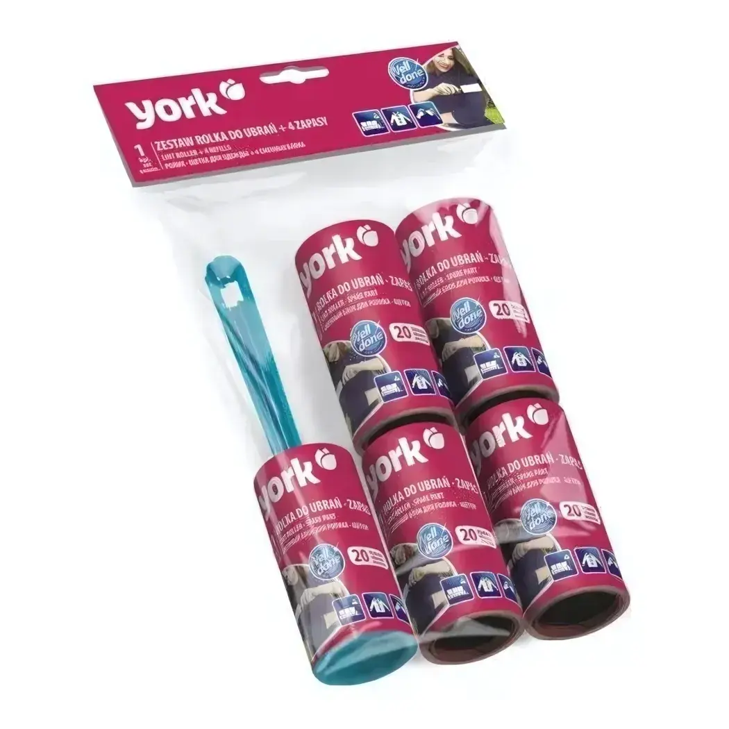 Набор для уборки: ролик-щетка с 4 сменными блоками, 20 листов на рулон, York