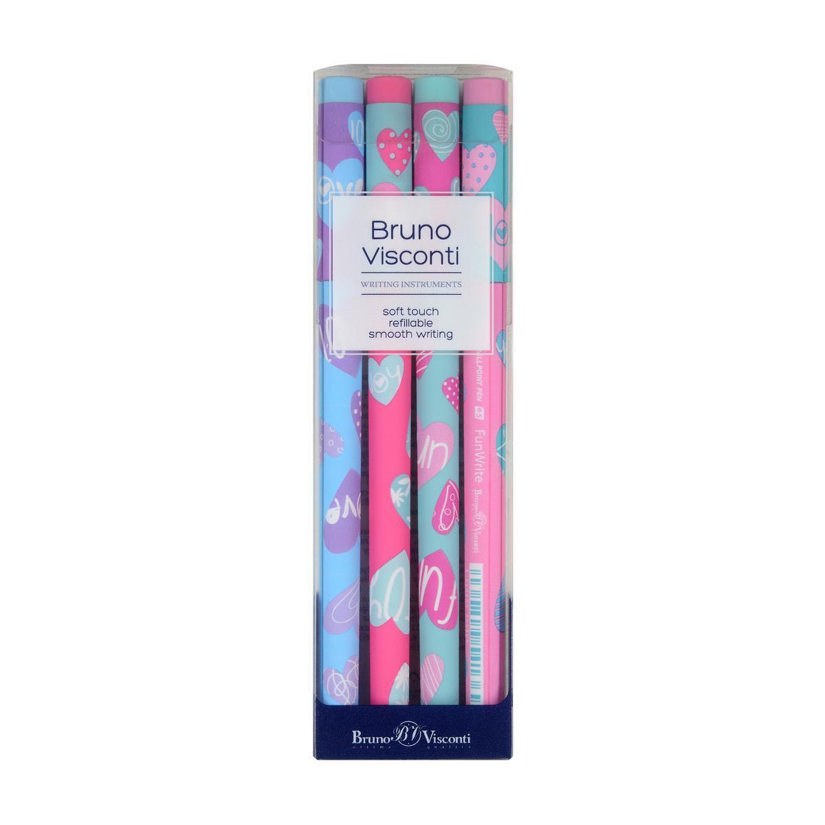 Набор ручек 'FunWrite.Сердечки.Эмоции', 4 штуки, синие, 0,5 мм