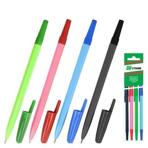 Набор шариковых ручек 'Стамм', 4 цвета, диаметр пишущего узла 1 мм, длина стержня 135 мм
