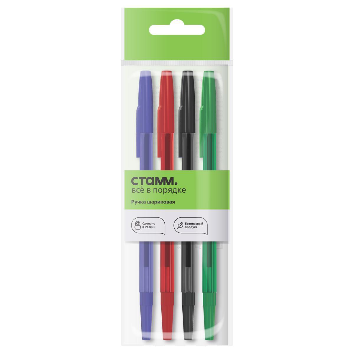 Ручки шариковые, набор 4 цвета, 0.7мм «СТАММ 049» – комфортное письмо, шестигранный корпус