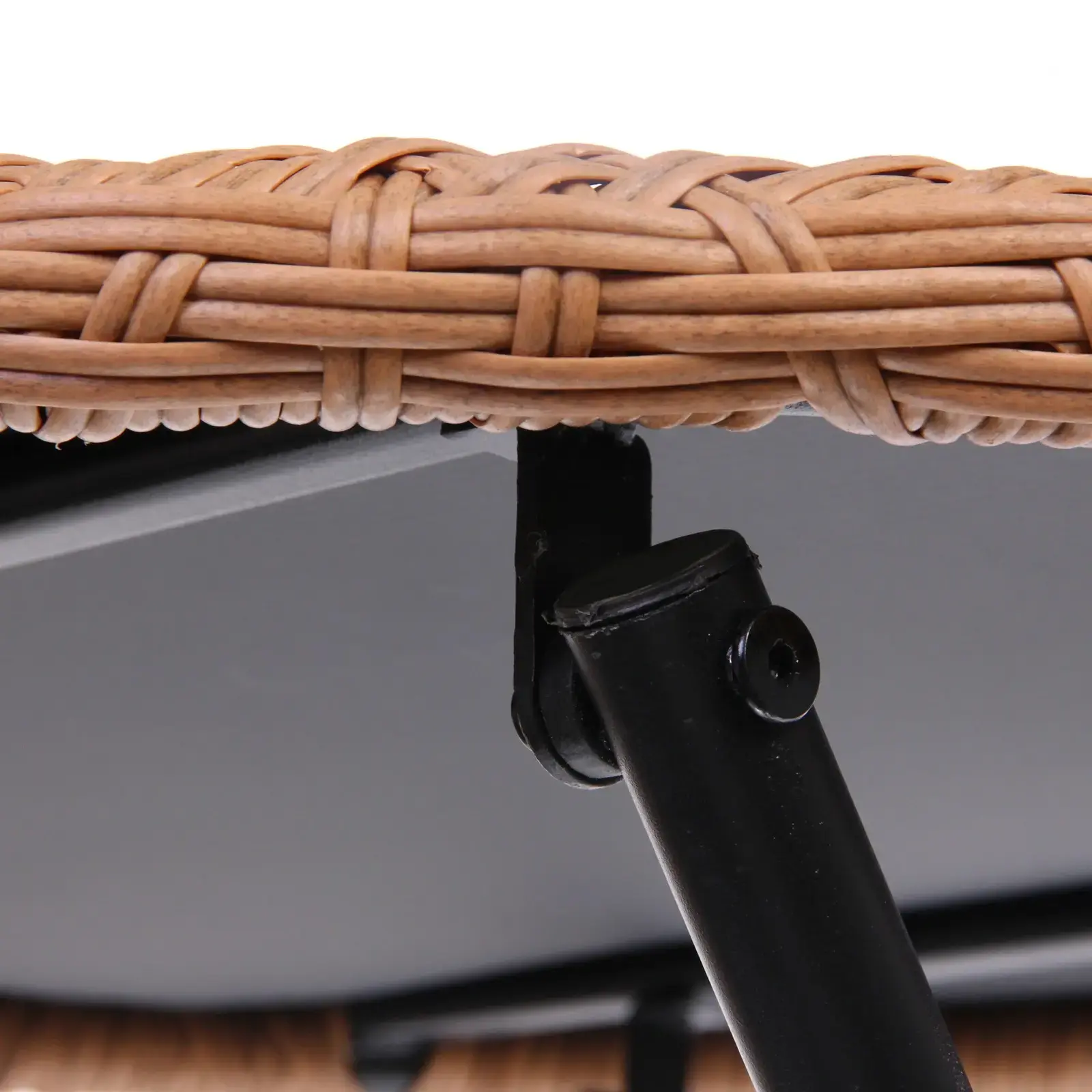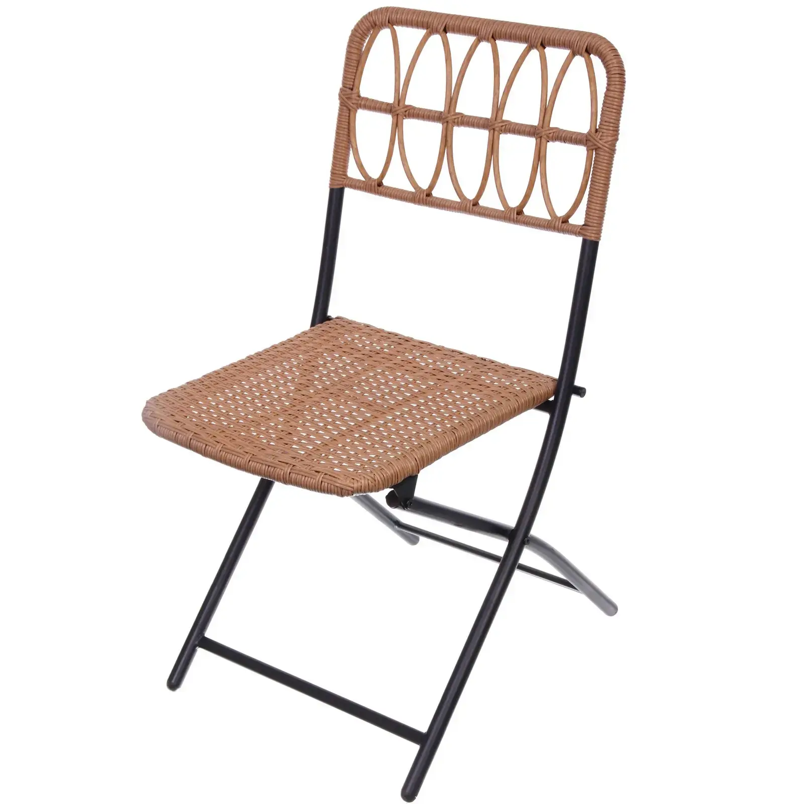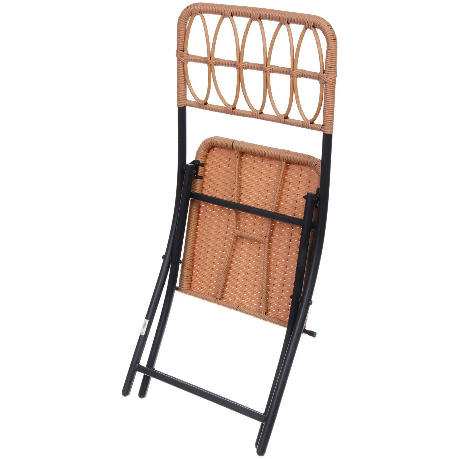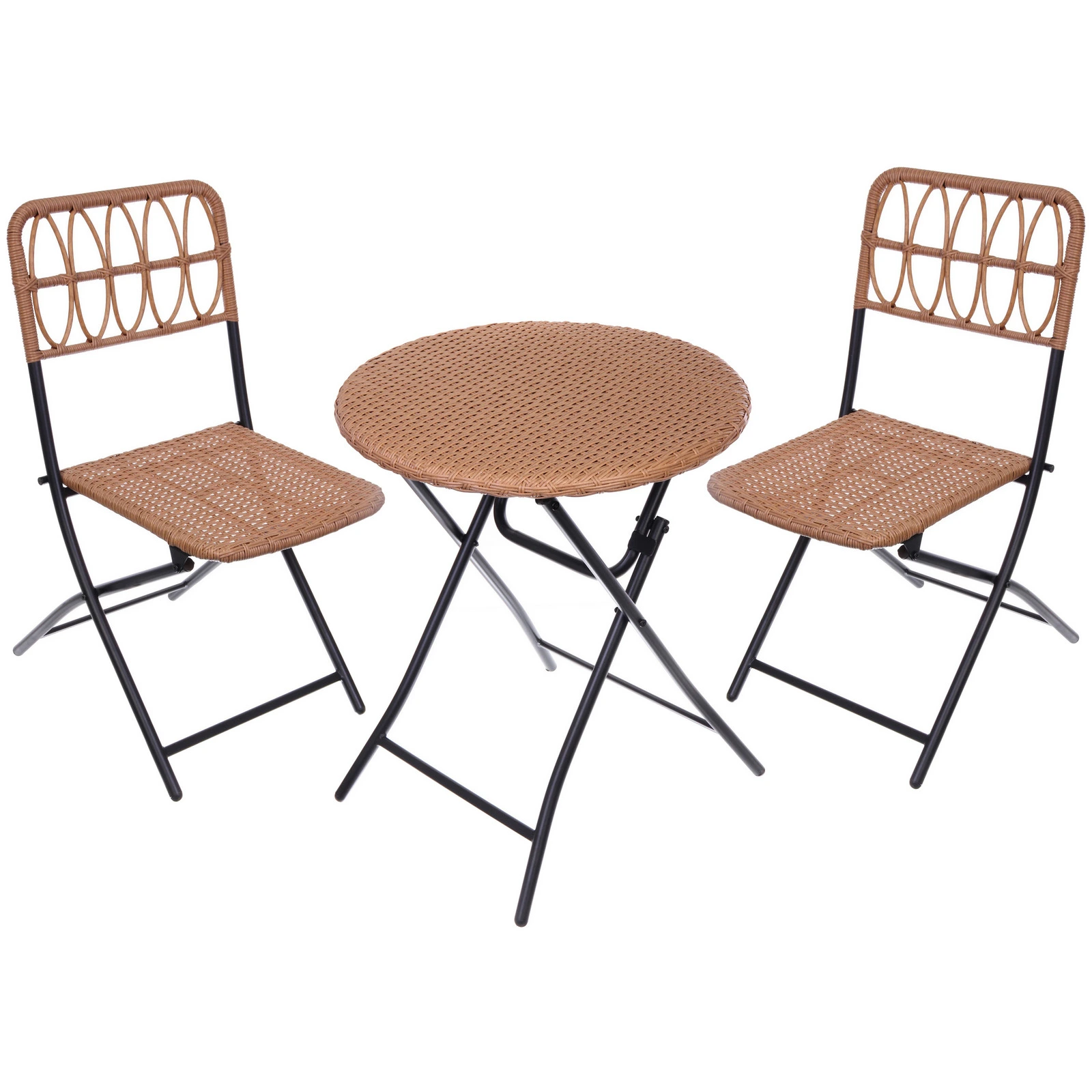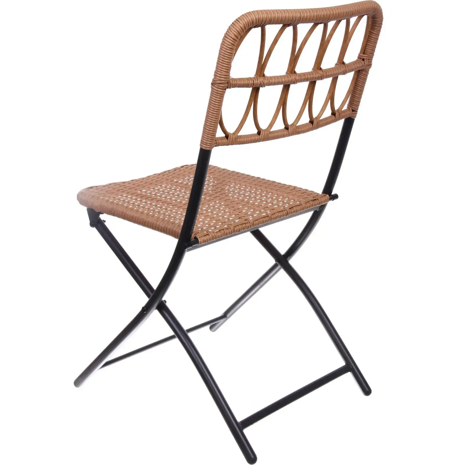 Металлопластиковая сборка сочетает легкость и устойчивость к коррозии. Складной механизм позволяет хранить комплект в сложенном виде, занимая минимальное пространство. Плетеная поверхность столешницы и сидений не нагревается на солнце, сохраняя приятную текстуру.