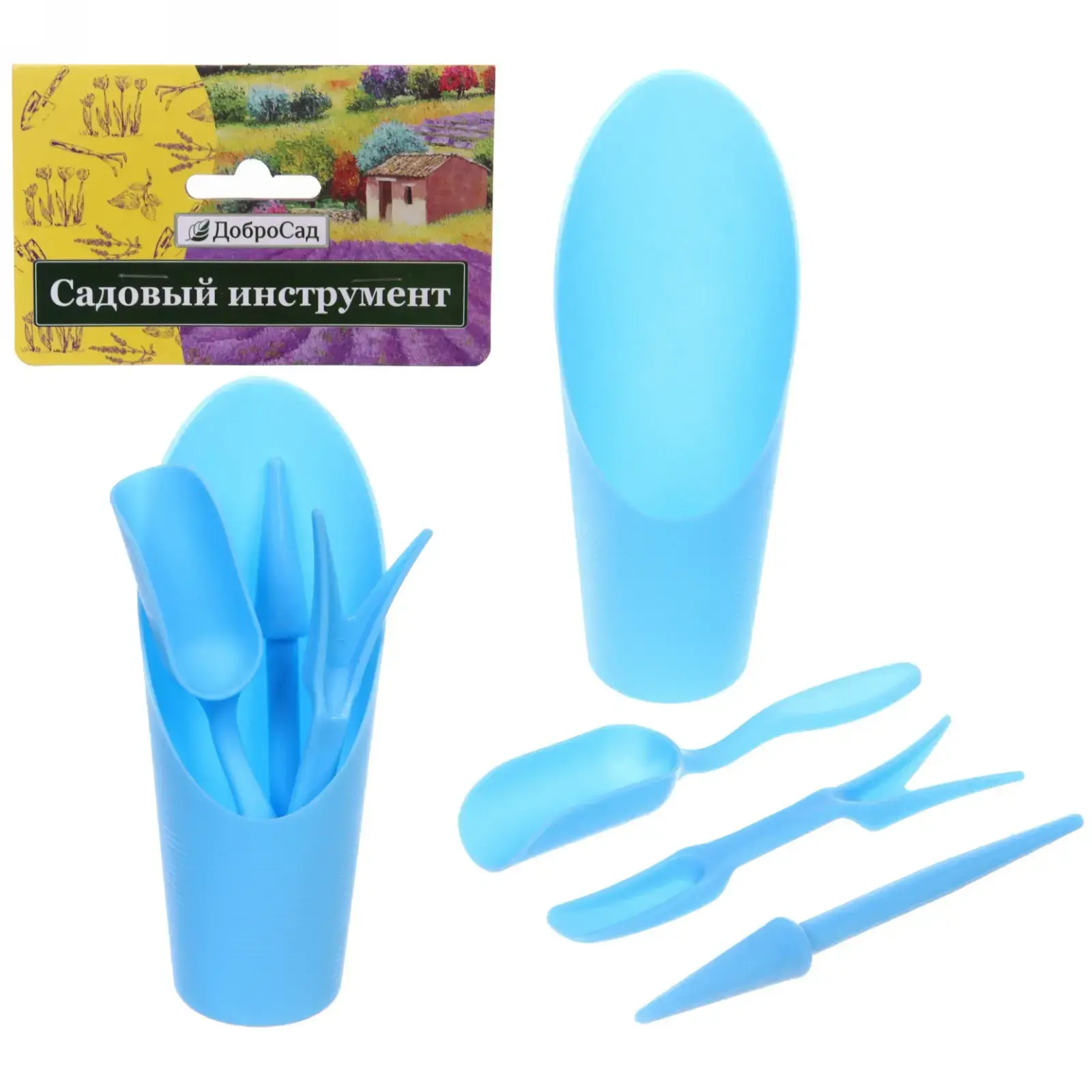 Набор садовых инструментов 'Алоэ', 4 предмета, пластик, голубой