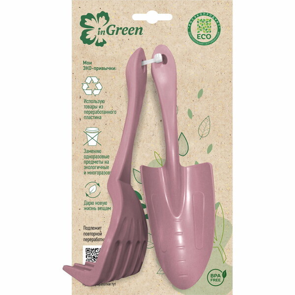 С набором садовых инструментов InGreen для пересадки вы получите удобство и комфорт в уходе за растениями. Этот набор включает в себя лопатку и грабельки, выполненные из прочного переработанного пластика, что делает их не только легкими, но и экологически безопасными. Цвет морозная слива добавляет стильный акцент в ваш сад или дом.