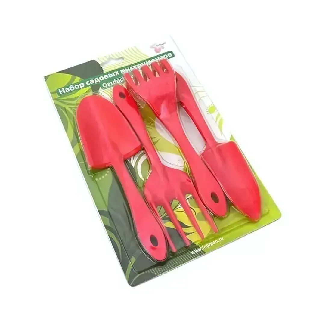 Яркий салатовый цвет помогает быстро найти инструменты среди зелени. Легкий пластик не ржавеет и прост в уходе — достаточно промыть водой после использования. Компактные размеры позволяют хранить набор даже в небольшом пространстве.