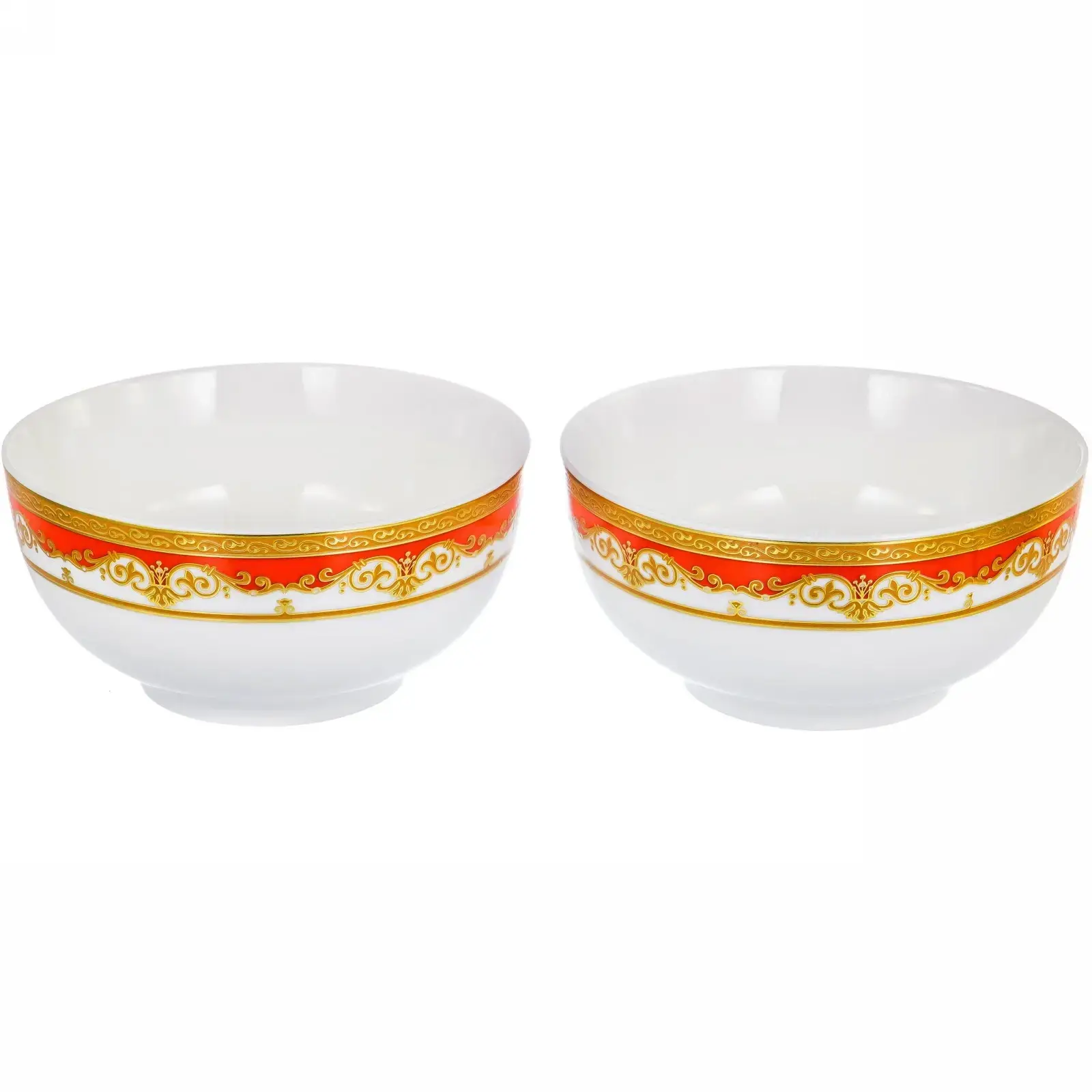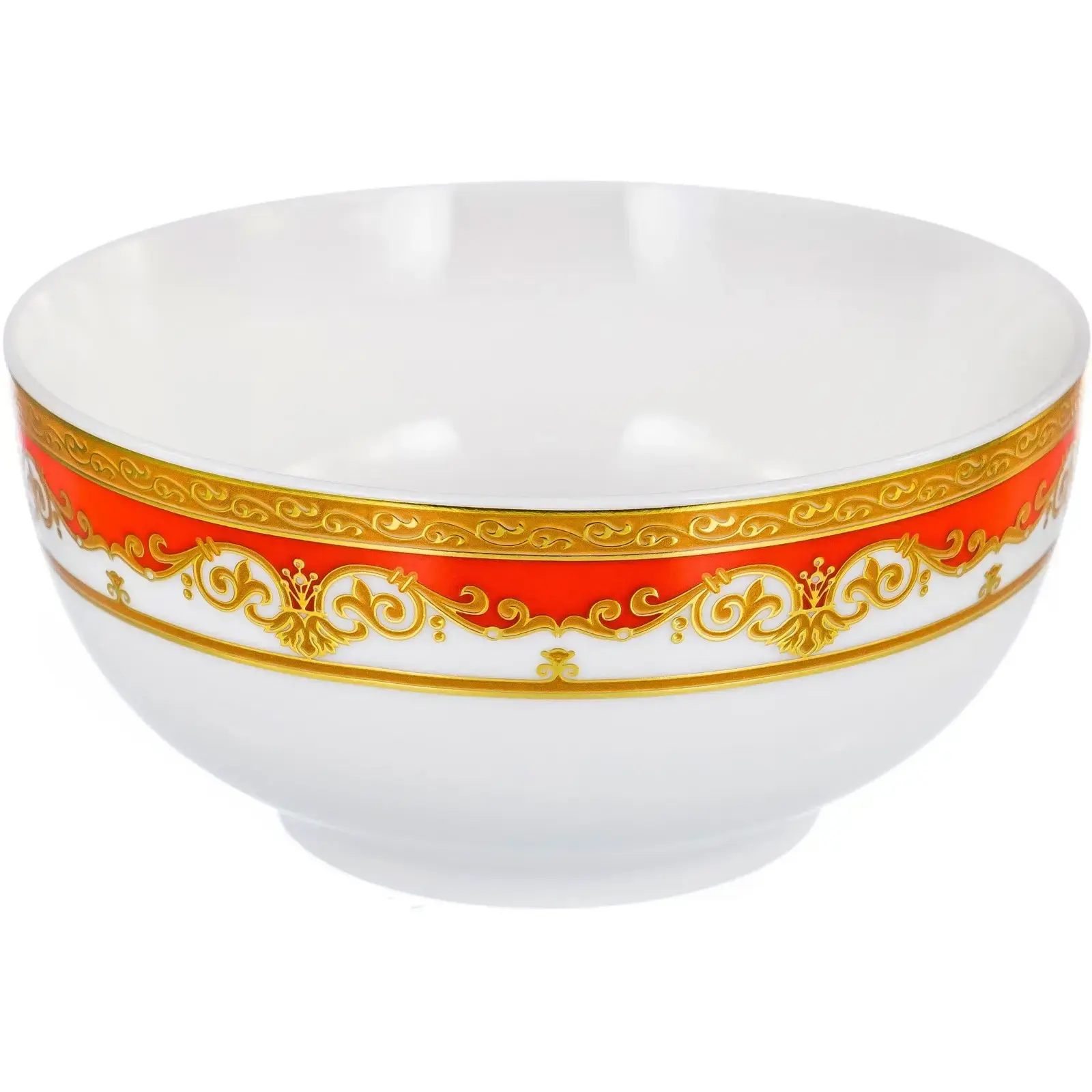 Глубокие чаши с плавными изгибами обеспечивают удобство использования. Золотистый орнамент по краю выполнен стойкими красками, которые не стираются при мытье. Компактные размеры позволяют хранить посуду даже в небольшом шкафу.