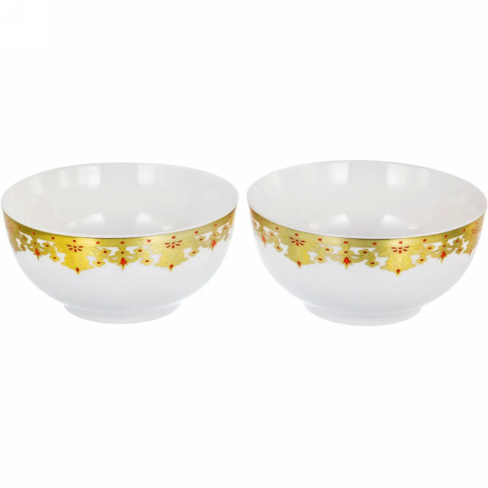 Набор из двух керамических салатников в подарочной упаковке — идеальное сочетание практичности и декоративного шика. Белоснежная поверхность с золотым орнаментом создаст праздничное настроение, а продуманная глубина чаш (375 мл) подчеркнет вкус ваших кулинарных шедевров.
