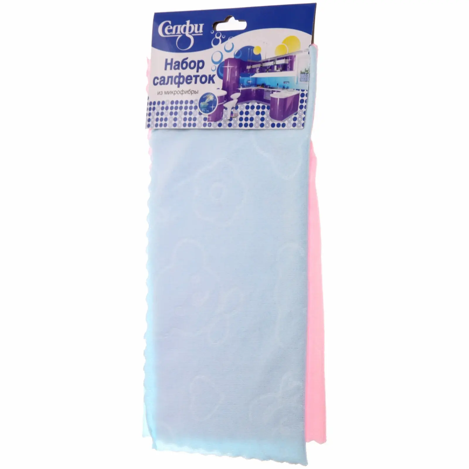 Размер каждой салфетки составляет 30х30 см, что делает их удобными для использования в любых условиях. Материал — полиэстер, который обеспечивает долговечность и эффективность. Упаковка имеет картонную подложку с подвесом, что позволяет удобно разместить товар на полке. Набор салфеток Селфи — это не только практичное, но и стильное решение для вашего дома.