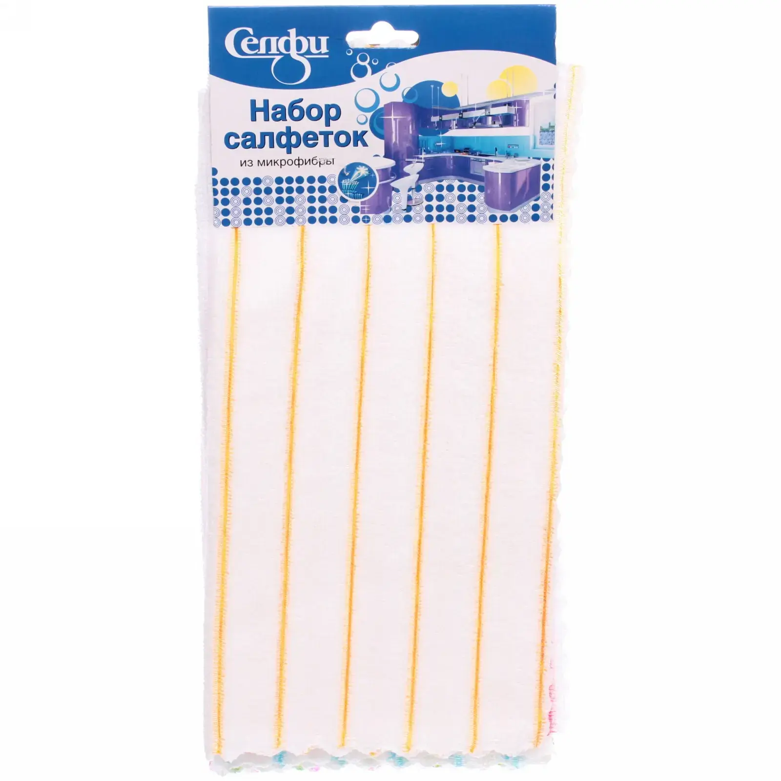 В наборе вы получите 5 салфеток, каждая из которых выполнена из мягкой микрофибры. Салфетки имеют белый цвет с яркими полосками, что добавляет им привлекательности. Они легко стираются и быстро сохнут, что делает их идеальными для ежедневного использования. Не упустите возможность сделать уборку проще и эффективнее с набором салфеток для уборки Селфи!
