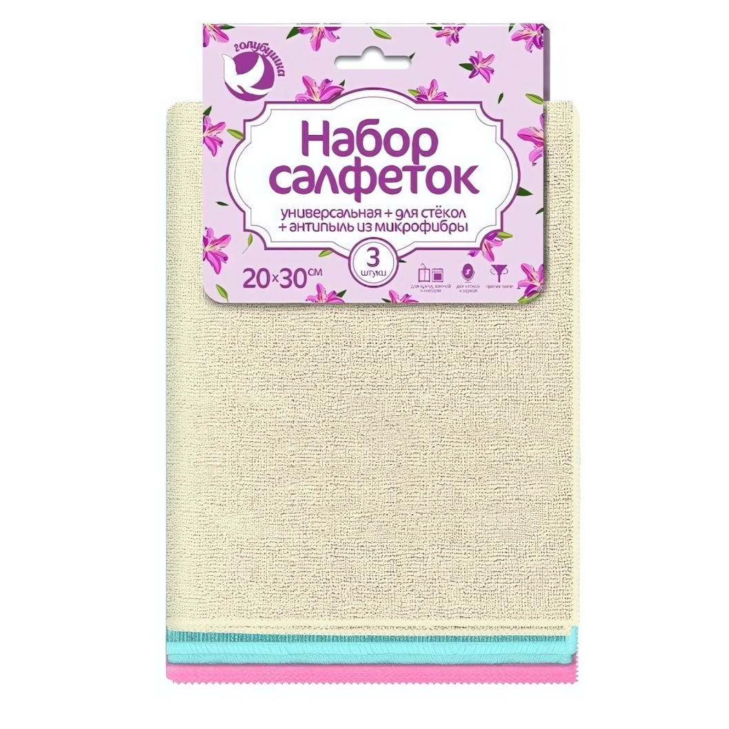 Набор салфеток из микрофибры «Голубушка» — практичное решение для быстрой и эффективной уборки дома. Три салфетки разного назначения помогают легко поддерживать порядок: удалять пыль, справляться с загрязнениями и придавать блеск стеклянным поверхностям без разводов. Микрофибра бережно очищает, не царапает и не оставляет ворса.