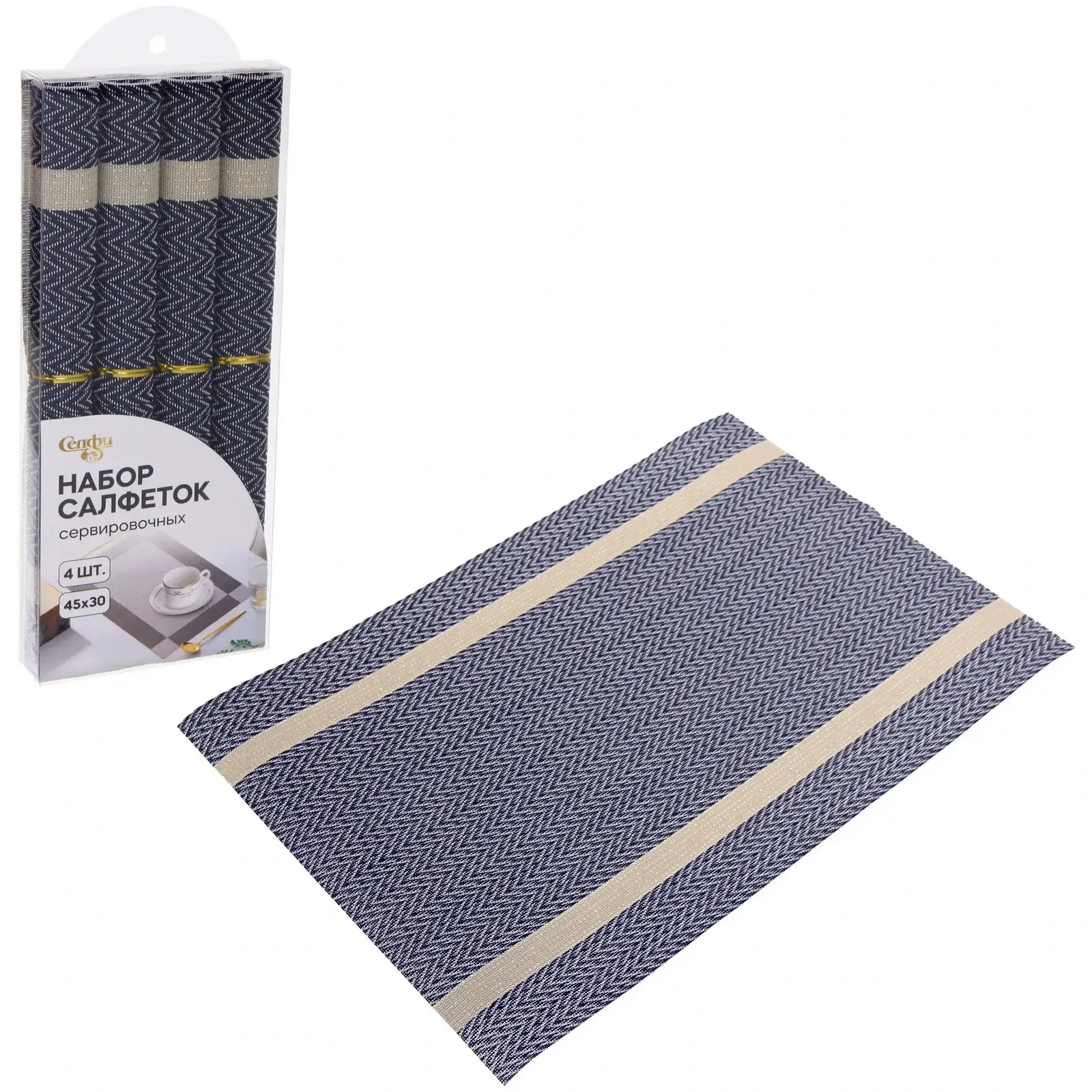 Набор салфеток 'Гармония' 4шт, 30х45см, ПВХ, синий, для защиты стола