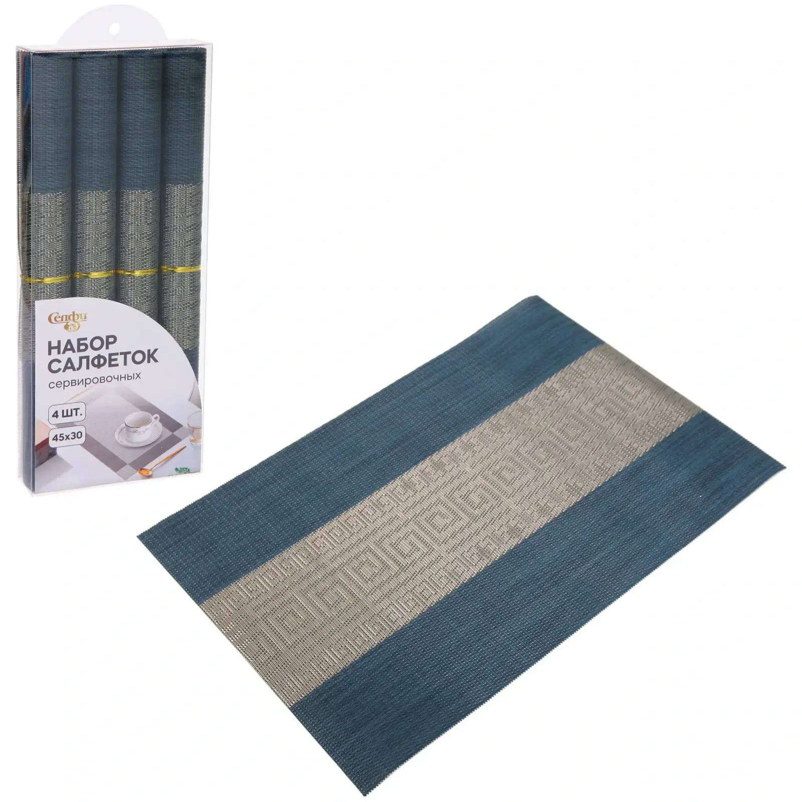 Салфетка сервировочная "Греческий узор" 30*45см, цвет синий, набор 4 шт