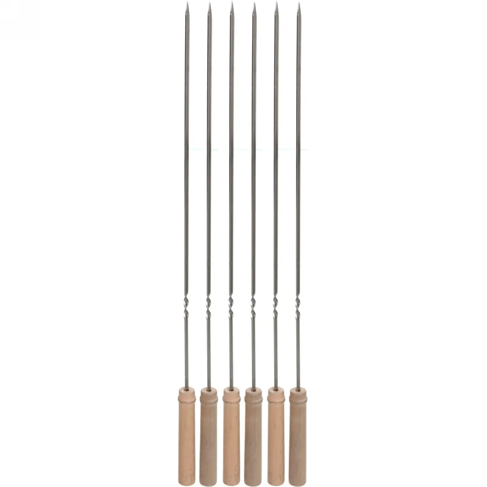Каждый шампур имеет длину 48 см и ширину 5 мм, что делает их идеальными для использования на мангале. Деревянные ручки имеют светлый цвет и гладкую поверхность, что обеспечивает удобство в использовании. Набор состоит из 6 шампуров, что позволяет готовить для компании друзей или семьи. Эти шампуры станут незаменимым помощником на вашем дачном участке или во время выездного пикника.