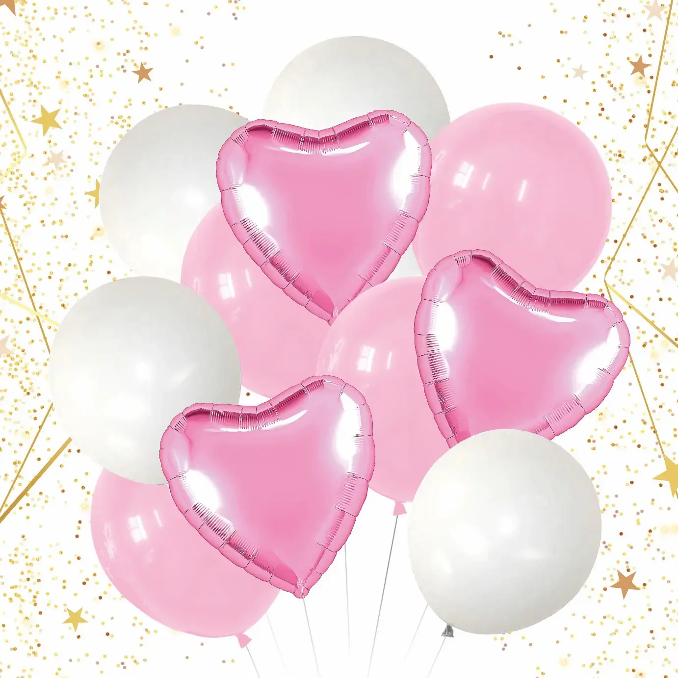 Этот набор шаров станет идеальным дополнением к любому празднику, добавляя яркие акценты и создавая атмосферу радости и веселья. Шары в форме сердца и круглые шары белого и розового цвета идеально подойдут для свадеб, дней рождения и других торжеств. Порадуйте своих близких и друзей, украсив праздник красивыми и стильными шарами!