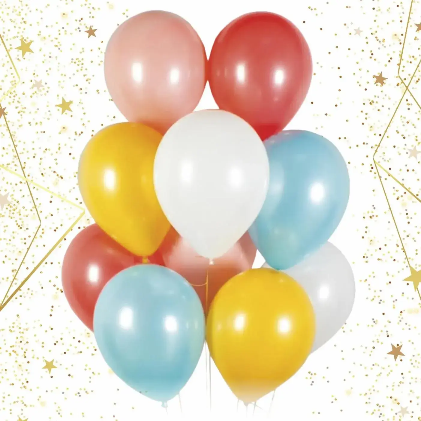 В набор входят шары пяти различных цветов: розовый, красный, желтый, голубой и белый. Каждый шар имеет глянцевую поверхность, создающую эффект праздничного сияния. Размер шаров подходит как для индивидуального использования, так и для создания композиций.