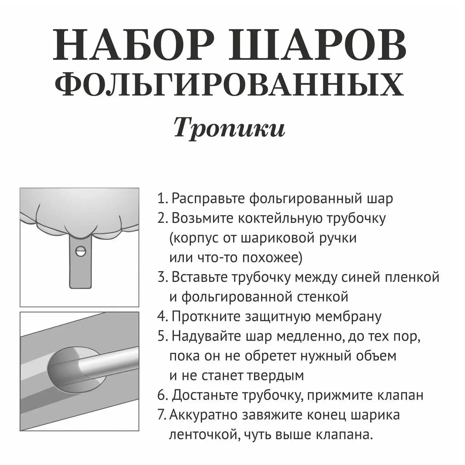 Каждый шар в наборе имеет стандартный размер, что делает их удобными для использования в любых условиях. Упаковка оформлена в ярком дизайне, что делает её отличным подарком для друзей и близких. Не упустите возможность сделать ваш праздник незабываемым с набором шаров «Тропики»!