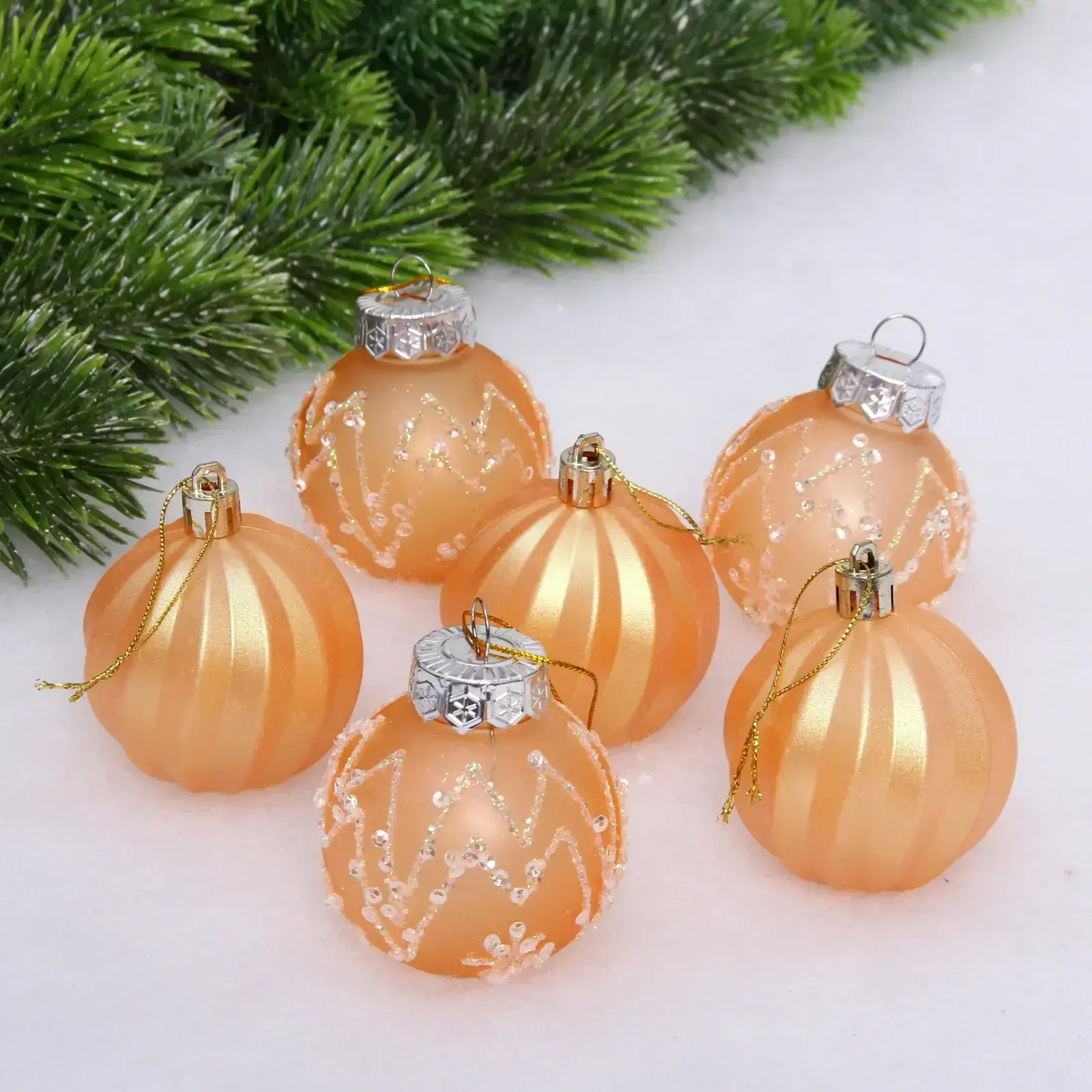 Этот набор ёлочных шаров диаметром 6 см — отличный выбор для праздничного декора вашего дома или офиса. В комплект входит 12 ярких, светло-оранжевых и золотисто-персиковых шаров, которые легко разместить на любой елке для создания уютной и волшебной атмосферы. В зависимости от выбранных вариантов, шары оснащены глянцевой или матовой поверхностью с декоративными узорами и блестками, что придает каждому изделию особый шарм.