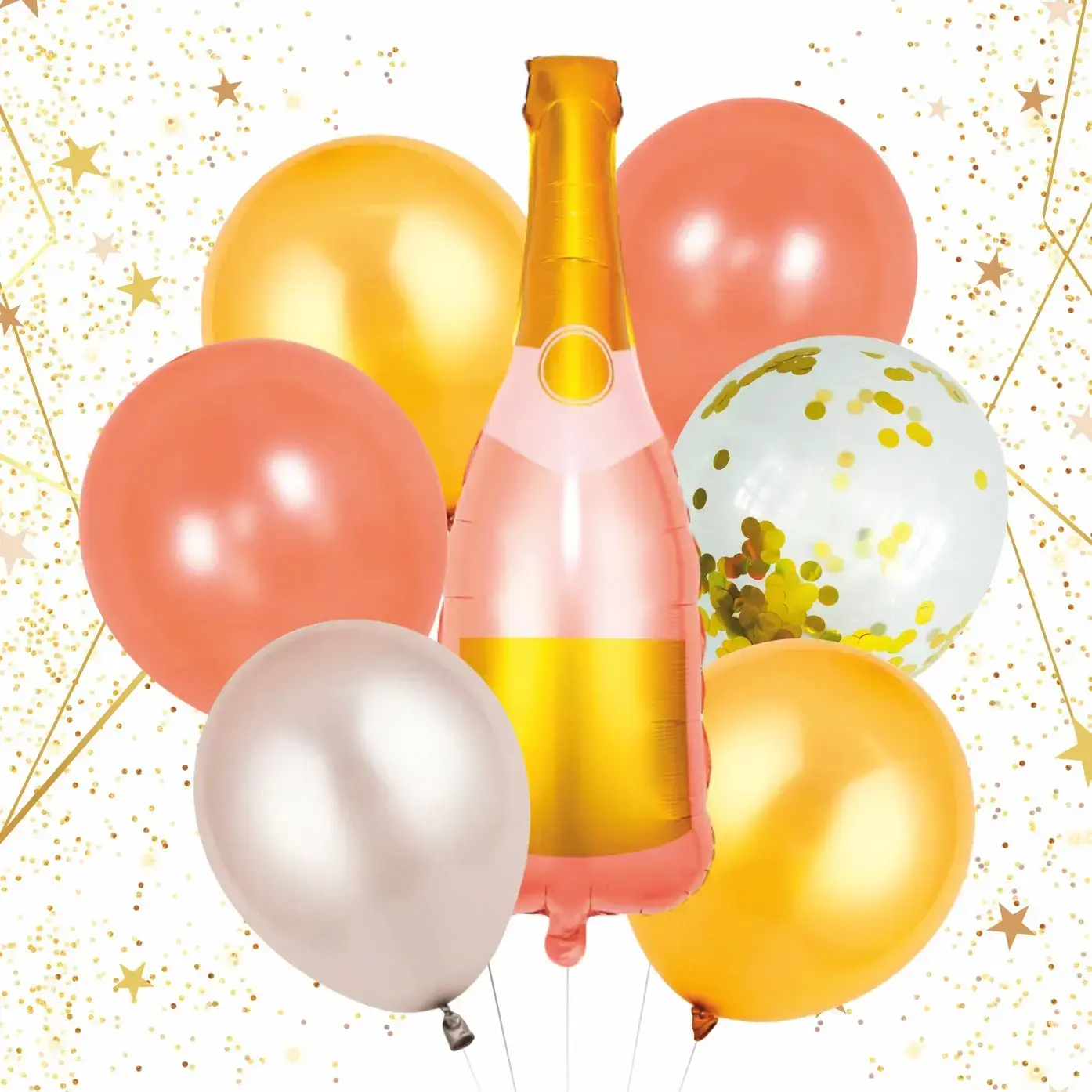 Шары легко надуваются и могут использоваться как для украшения помещений, так и для создания оригинальных композиций. В набор входят 7 шаров, среди которых есть фольгированный шар в форме бутылки шампанского, что добавляет уникальности вашему празднику. Подходит для всех возрастов и различных мероприятий.