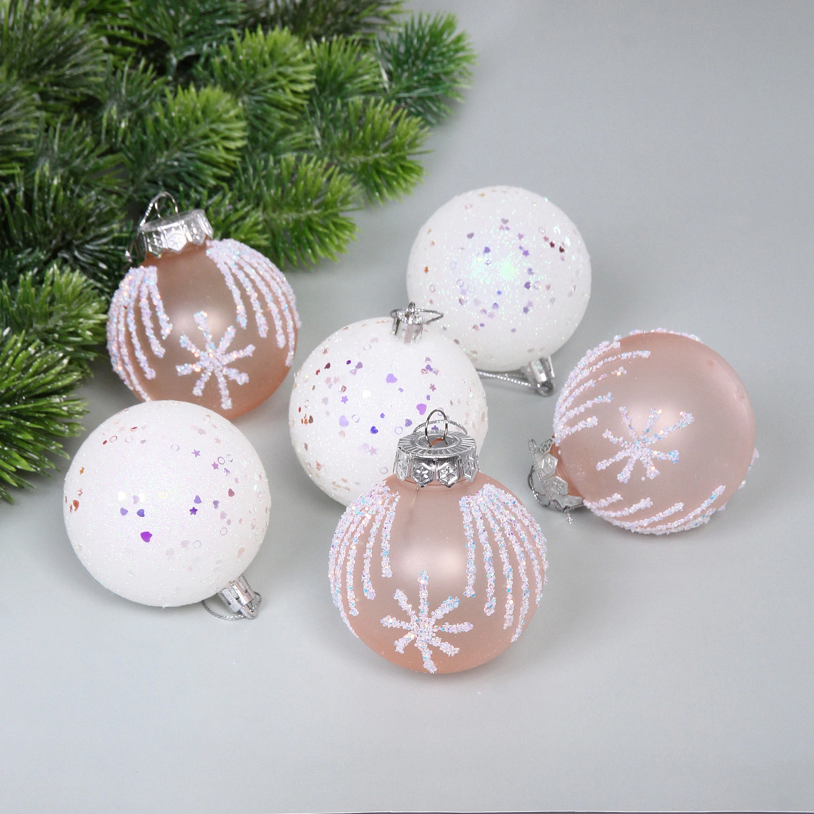 Создайте волшебную и гармоничную атмосферу праздника с готовым набором из шести мерцающих ёлочных шаров. Этот комплект позволит вам быстро и красиво украсить новогоднее дерево, не тратя время на подбор отдельных украшений по цвету и стилю.