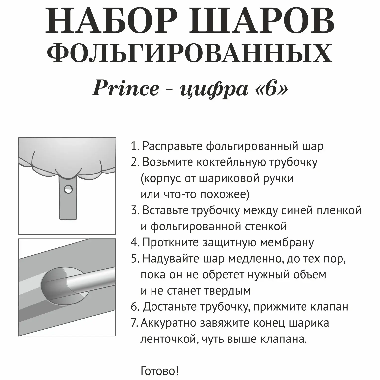 Выбирая набор «6 - Prince», вы получаете не только красивые, но и практичные шары. Они добавят ярких красок и создадут праздничное настроение. Латексные и фольгированные шары отличаются высокой прочностью и устойчивостью к повреждениям, что позволяет им долго сохранять свою форму и цвет.