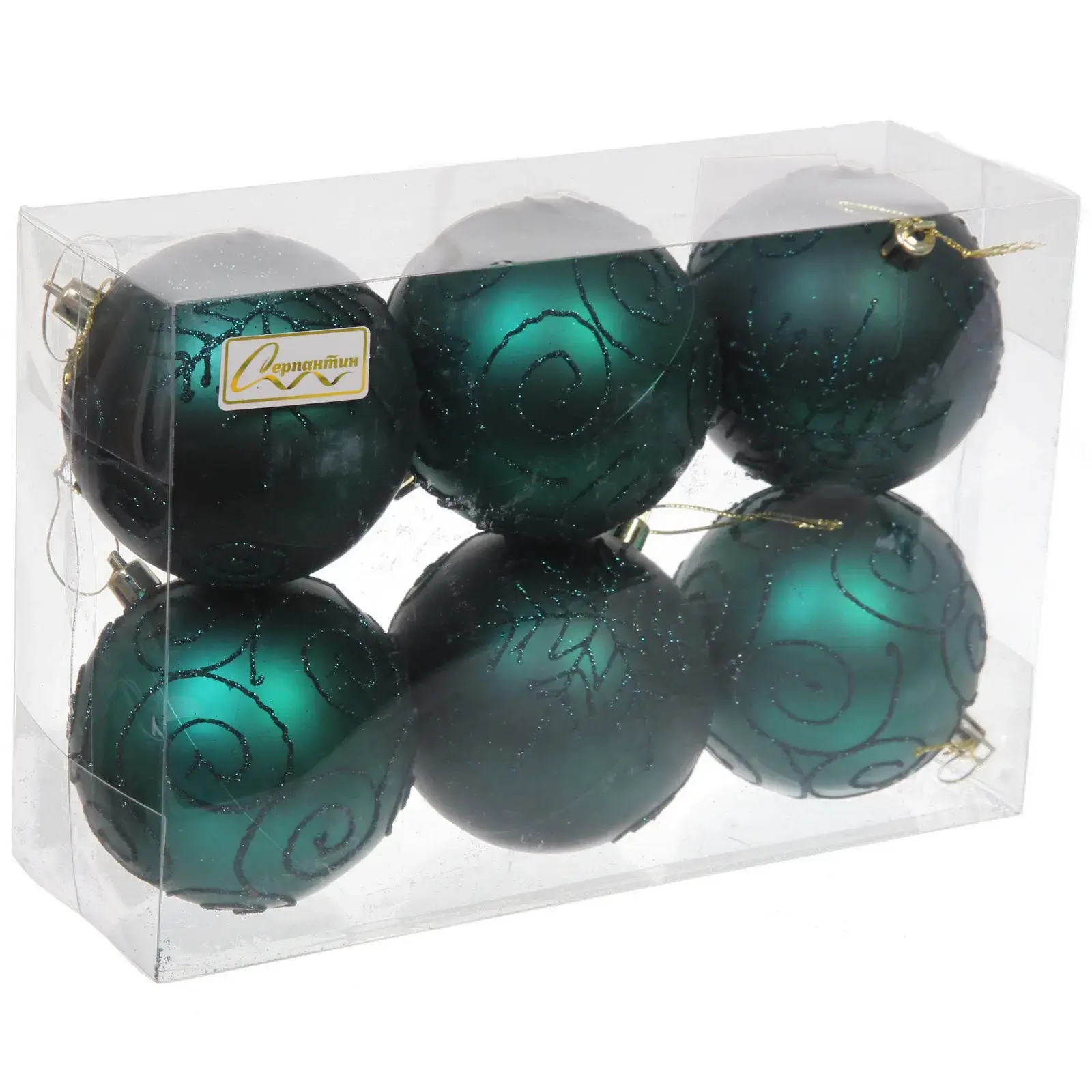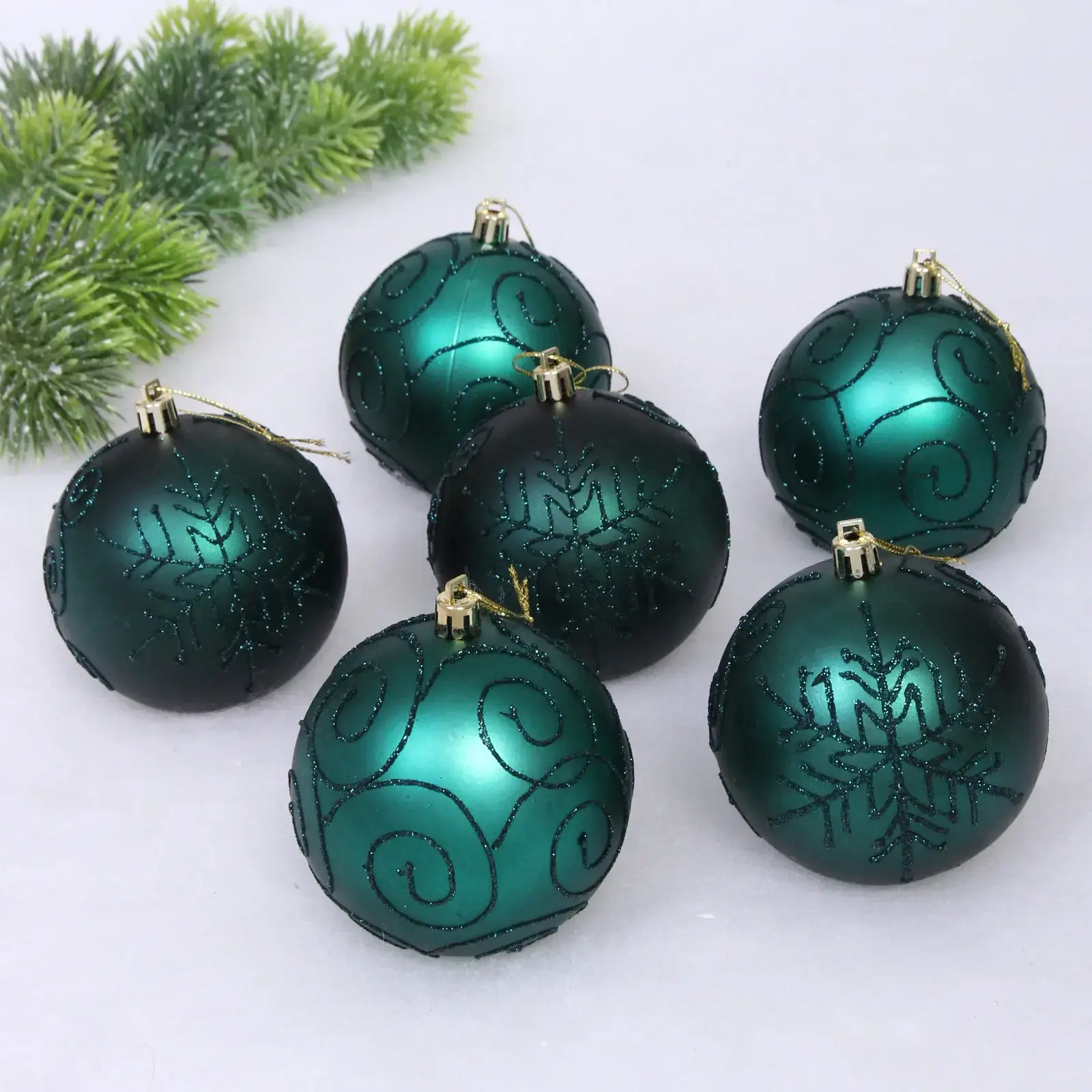 - Изумрудный цвет и блестящие узоры делают шары стильными и привлекательными.