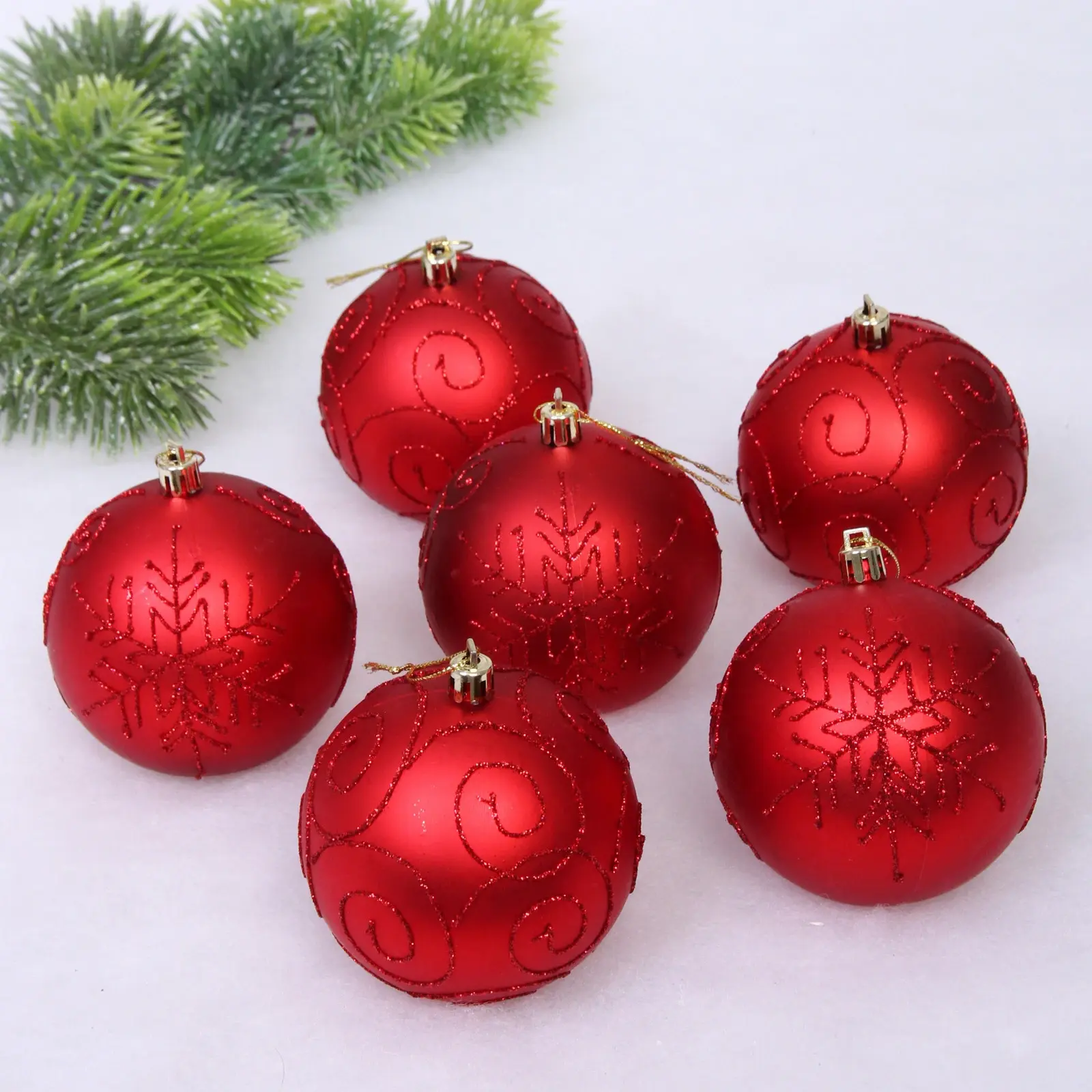 Этот набор из шести красных шаров диаметром 8 см станет идеальным дополнением к вашему новогоднему декору. Яркий цвет и блестящие узоры придадут вашему празднику особую атмосферу уюта и радости. Шары изготовлены из качественного пластика, что обеспечивает их долговечность и надежность. Они легко подвешиваются благодаря металлическим петелькам, что делает процесс украшения простым и удобным.