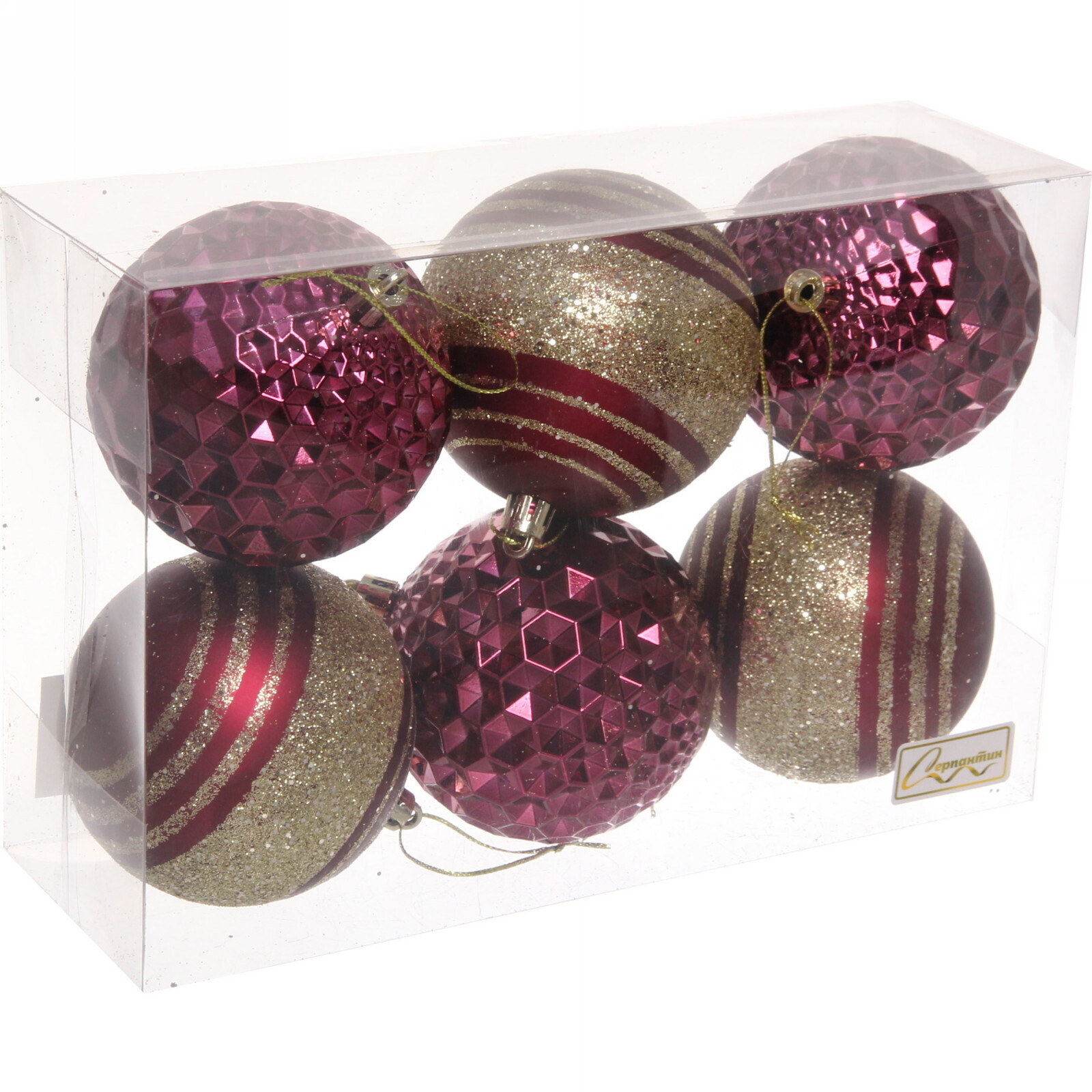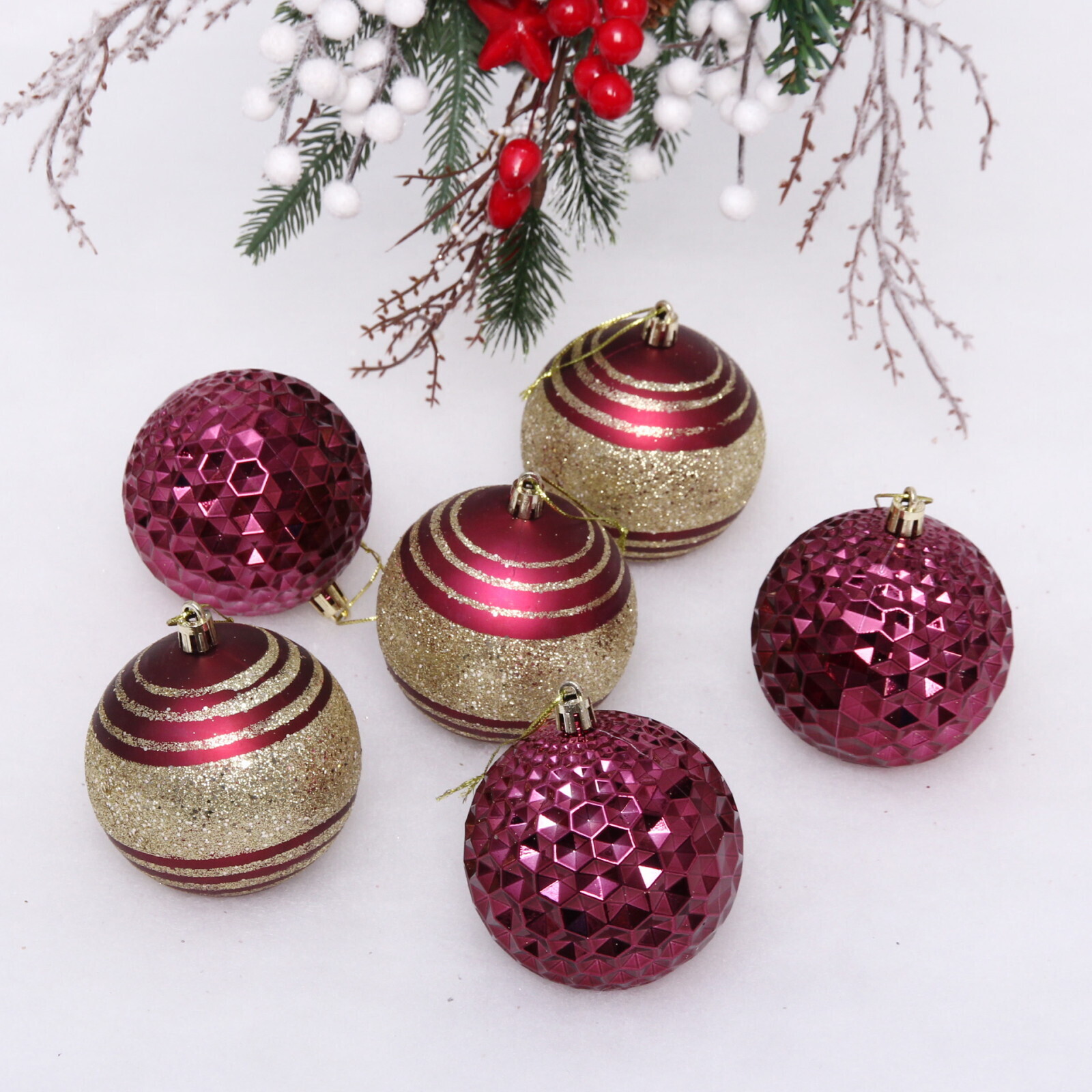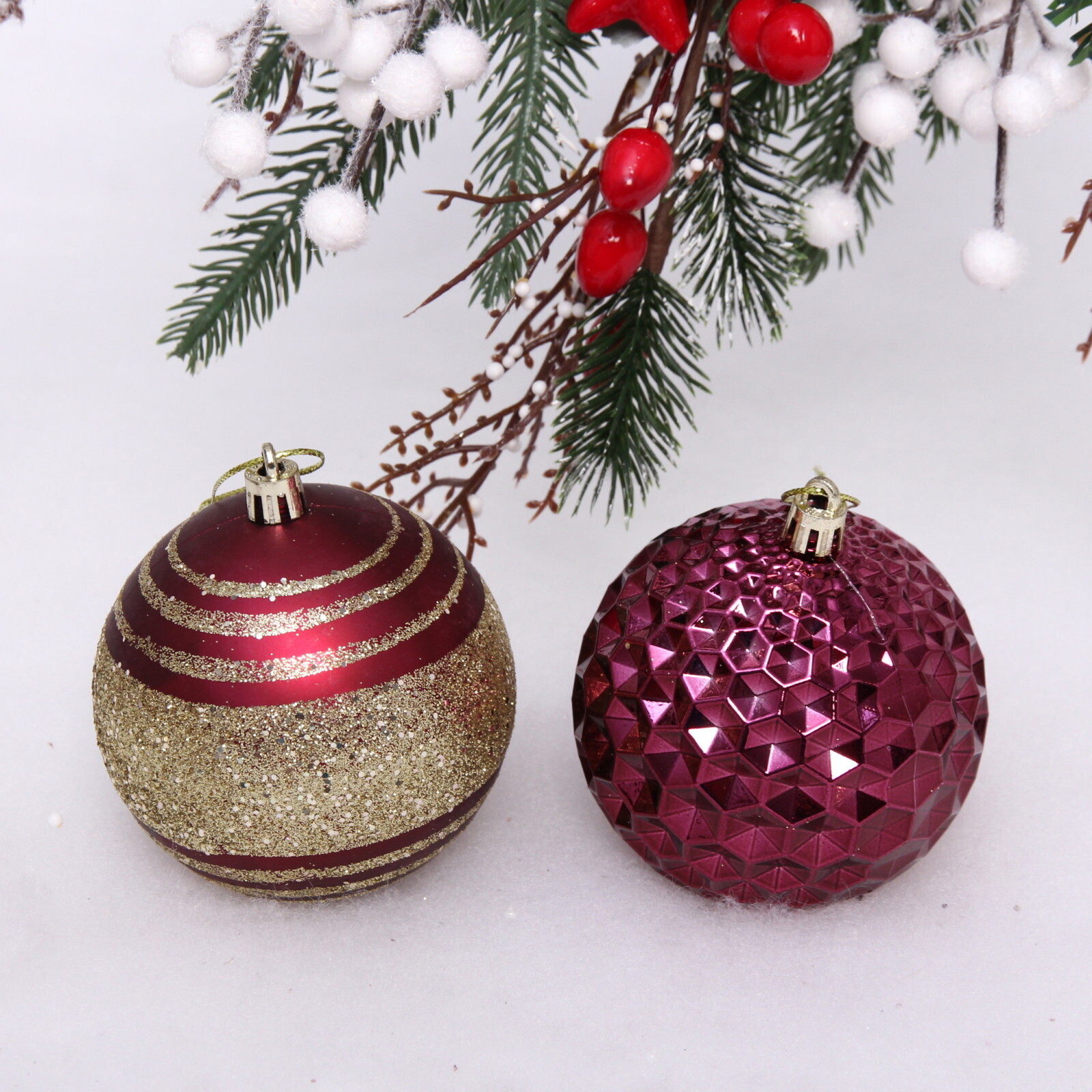 Набор шаров 8 см «Сказочный блеск» (в наборе 6 шт), Рубин, пластик, для елки и декорирования