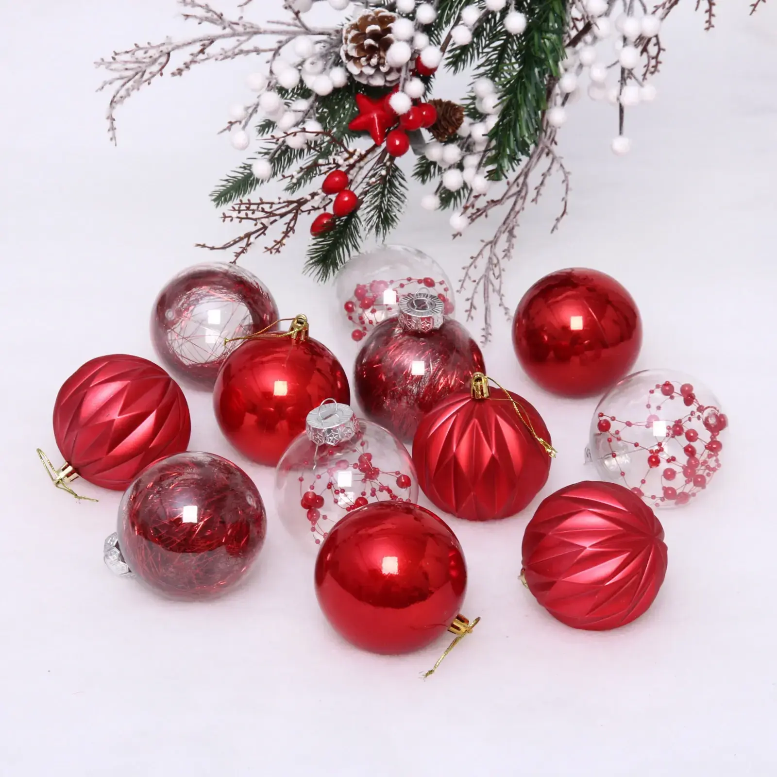 Шары идеально подходят для украшения новогодней елки, а также могут использоваться для декорирования интерьера в праздничные дни. Благодаря разнообразию текстур и оттенков, вы сможете легко комбинировать их с другими украшениями, создавая уникальные композиции. Набор состоит из 12 шаров, что позволяет вам экспериментировать с дизайном и стилем оформления.