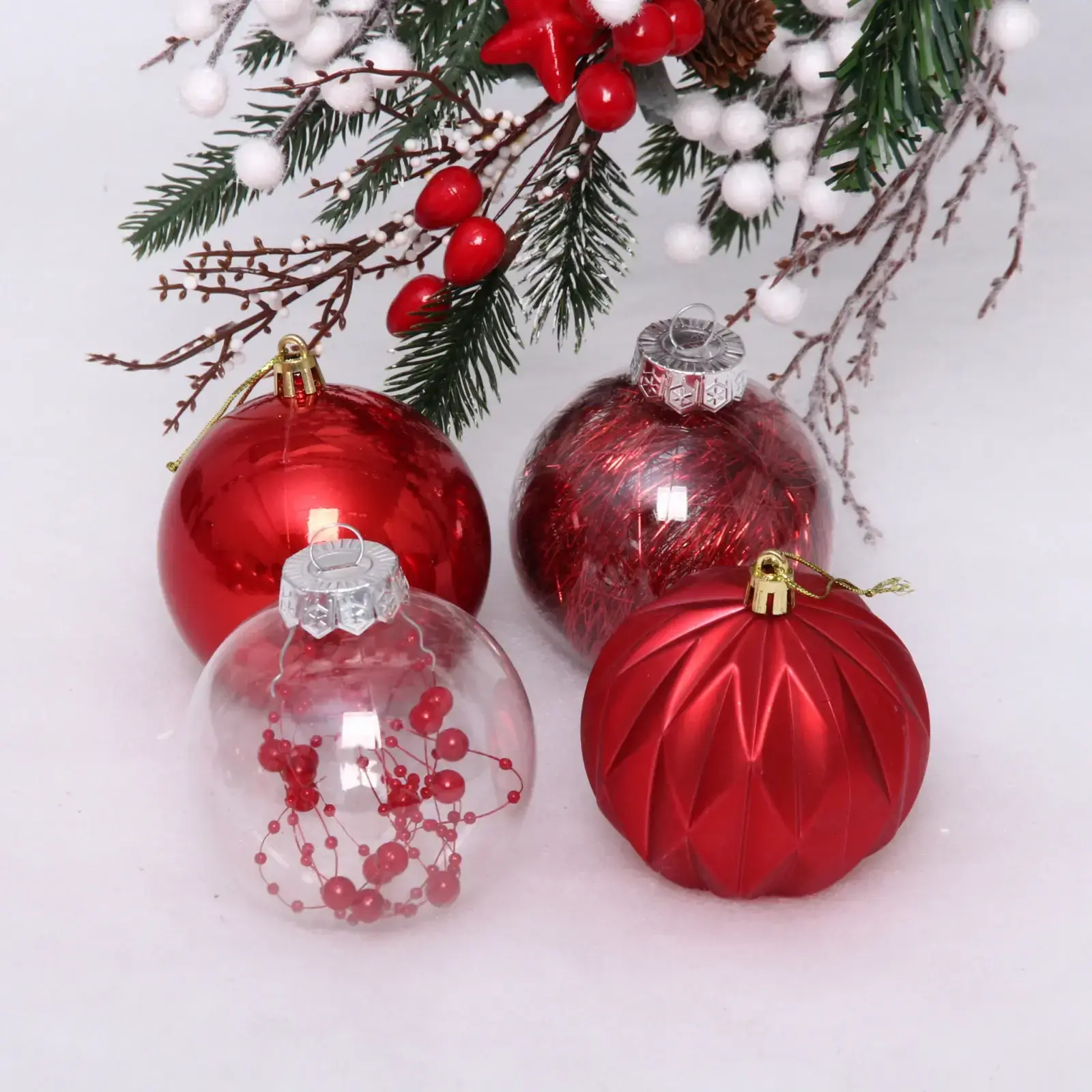 Каждый шар имеет диаметр 8 см, что делает их идеальными для любого размера елки. Красный цвет с различными декоративными элементами добавляет яркости и праздничного настроения. Упаковка позволяет удобно хранить шары после праздников, сохраняя их в идеальном состоянии до следующего года.
