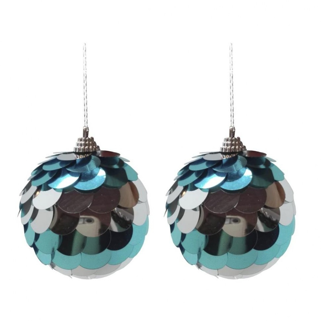 Набор шаров «Чeшуйки» – 2 шт., голубой‑серебряный, 8 см, пенопласт, блестящая чешуя для новогоднего декора