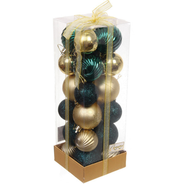 Этот набор шаров станет идеальным дополнением к вашему новогоднему декору, добавляя уют и атмосферу праздника в ваш дом. Сочетание изумрудного и золотого цветов придаст вашему интерьеру элегантность и стиль. Шары разных размеров (5 см и 4 см) позволят вам создать уникальные композиции на елке или в праздничных украшениях.