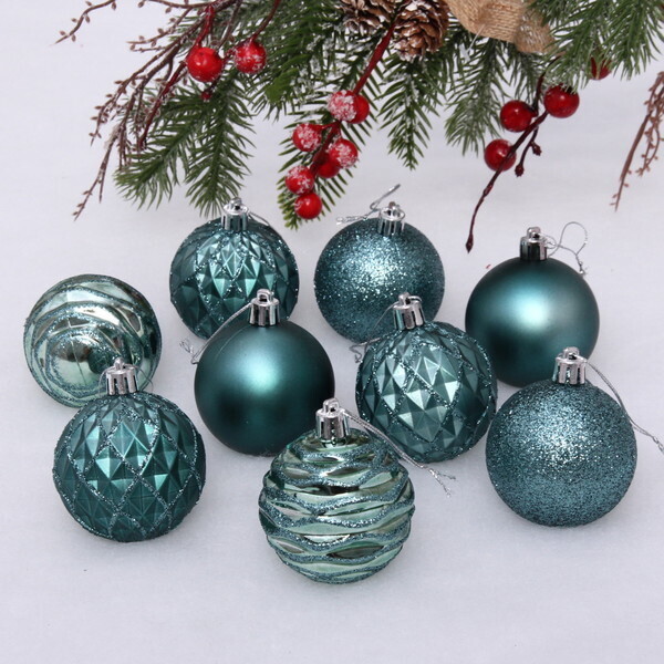 Шары имеют диаметр 6 см и выполнены в различных оттенках бирюзового и голубого. Они идеально подойдут для украшения как елки, так и праздничного стола. Набор станет отличным подарком для ваших близких и друзей, которые ценят красоту и стиль в новогоднем оформлении.