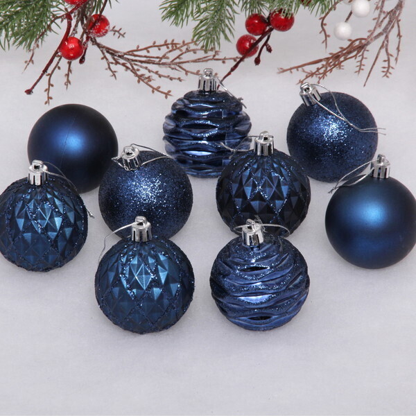 Создайте волшебную атмосферу праздника с набором шаров «Diamond shine». Эти яркие и стильные шары в темно-синих и голубых оттенках добавят изысканности вашему новогоднему декору. Благодаря блестящей поверхности и разнообразным текстурам, они прекрасно смотрятся как на елке, так и в интерьере. Каждый шар имеет уникальный дизайн, что делает ваш декор неповторимым.