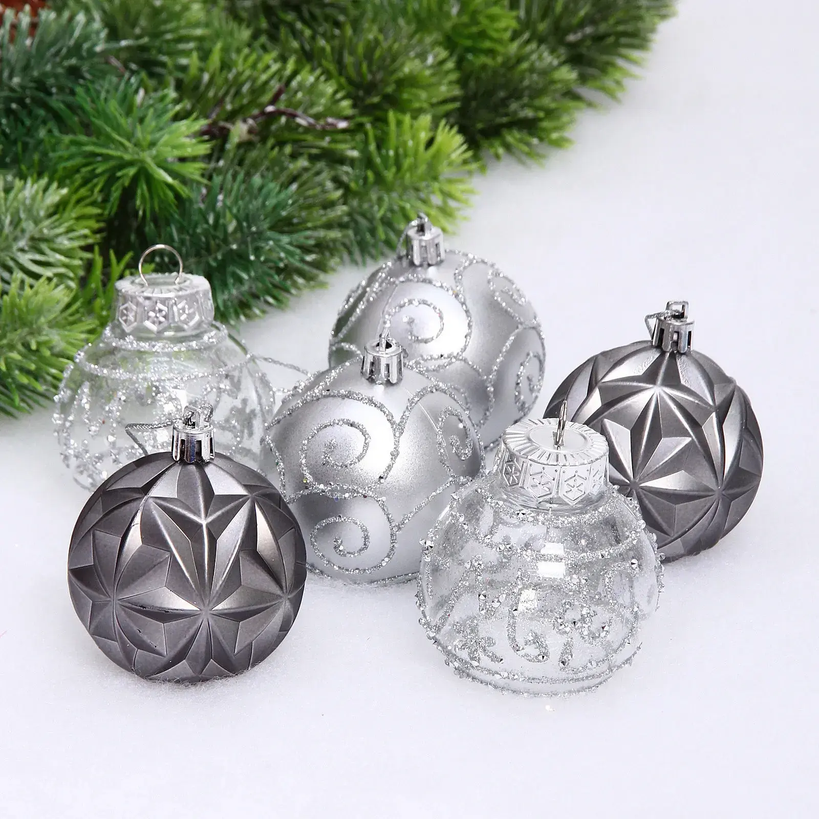 Набор шаров «Фантазия» 6 см (в наборе 6 шт), Графит, серебро, пластик, для елки и декорирования