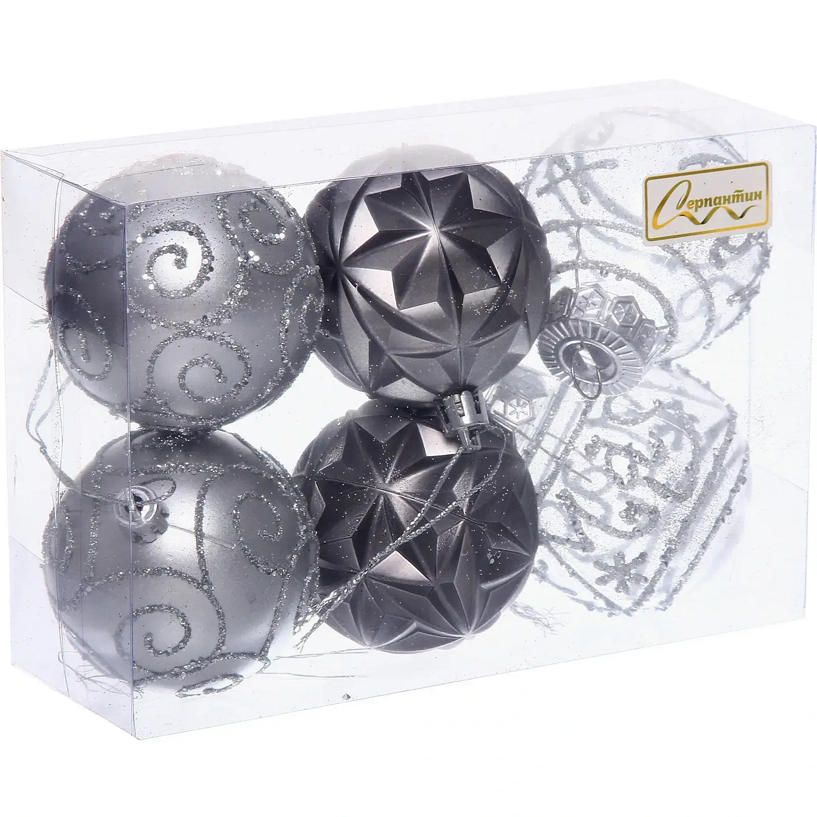 Этот комплект из 6 стильных новогодних украшений станет идеальным решением для декора вашей ёлки. Сочетание графитового и серебристого цветов добавит интерьеру элегантности и утончённости.