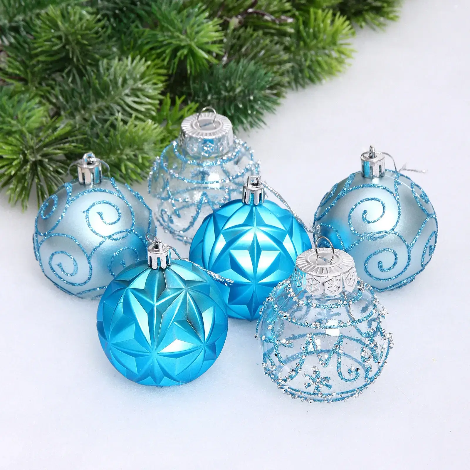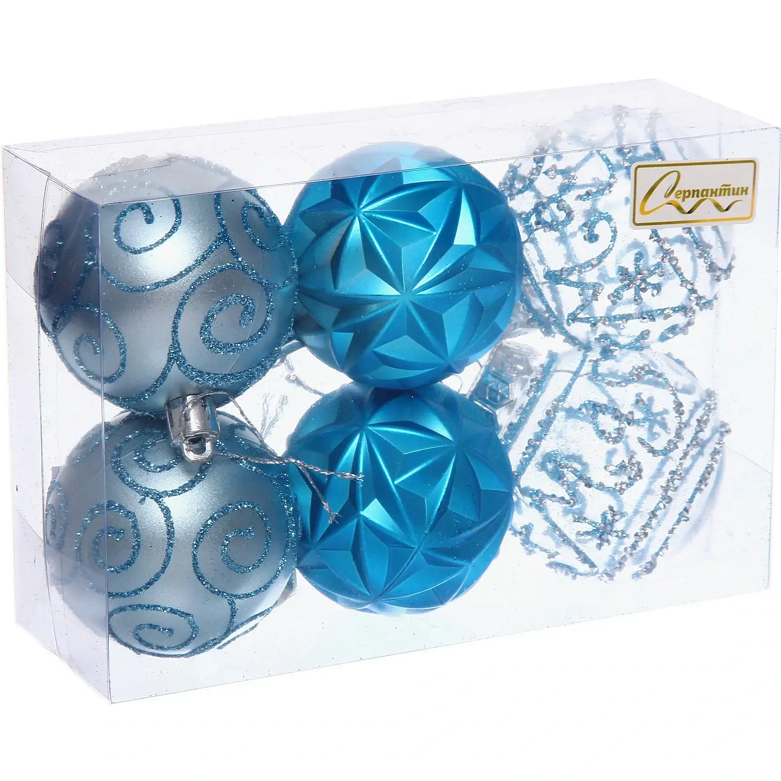 Набор шаров «Фантазия» 6 см (в наборе 6 шт), Лазурный, голубой, пластик, для елки и декорирования