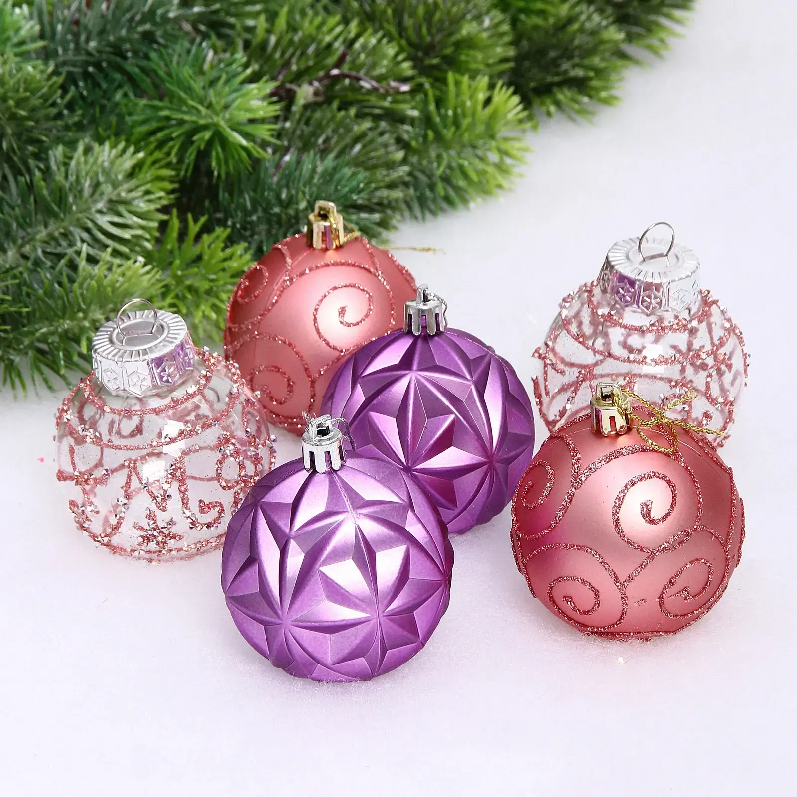 Набор шаров «Фантазия» 6 см (в наборе 6 шт), Сиреневый, лаванда, пластик, для елки и декорирования